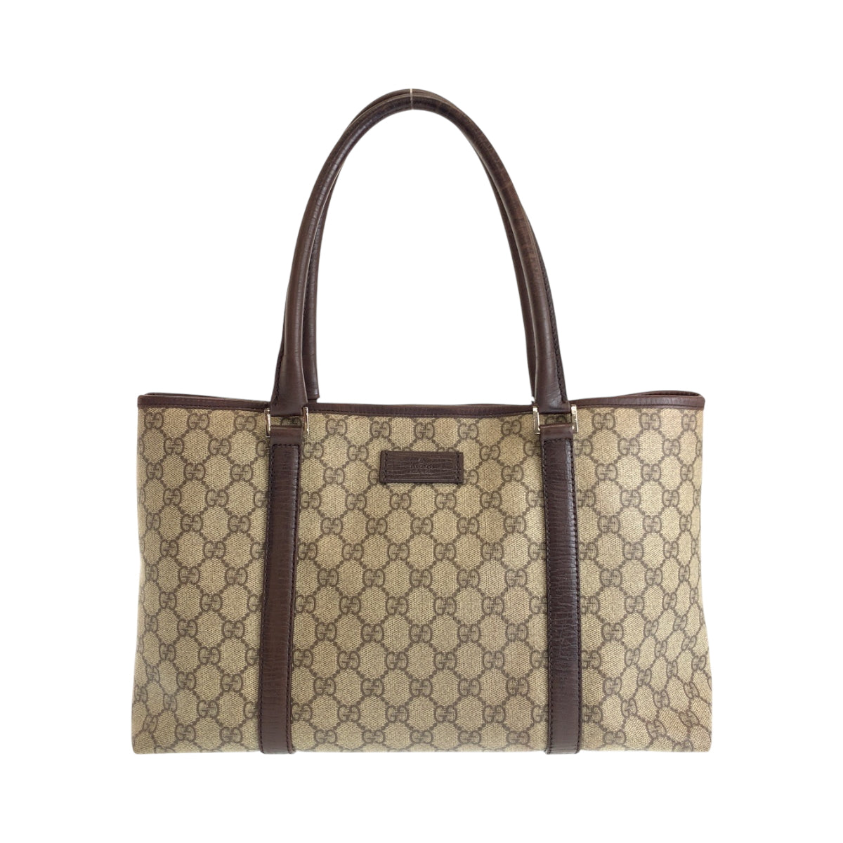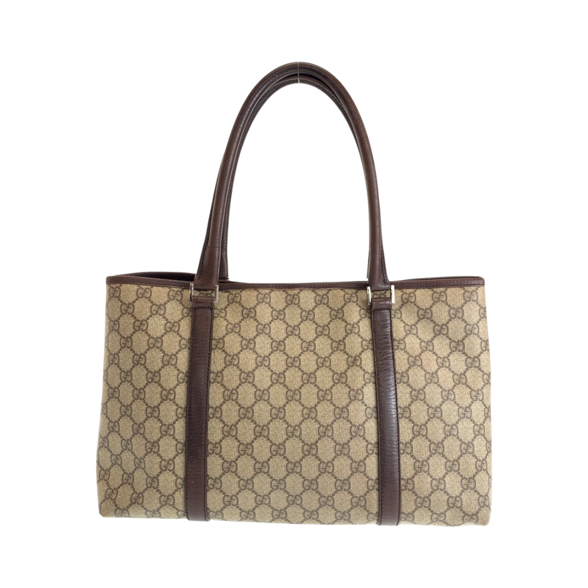 GUCCI Tote Bag 204990 GG Supreme Canvas Brown Beige SilverMetal Tote Bag Shoulder Bag Women Used Authentic