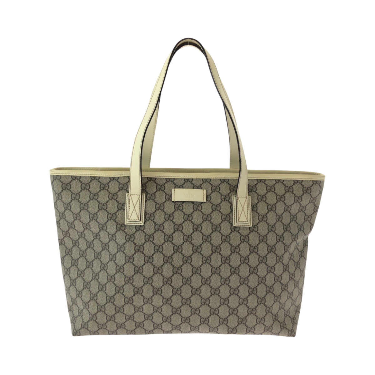 GUCCI Tote Bag 211137 PVC Beige Ivory SilverMetal Tote Bag Shoulder Bag GG plus Women Used Authentic