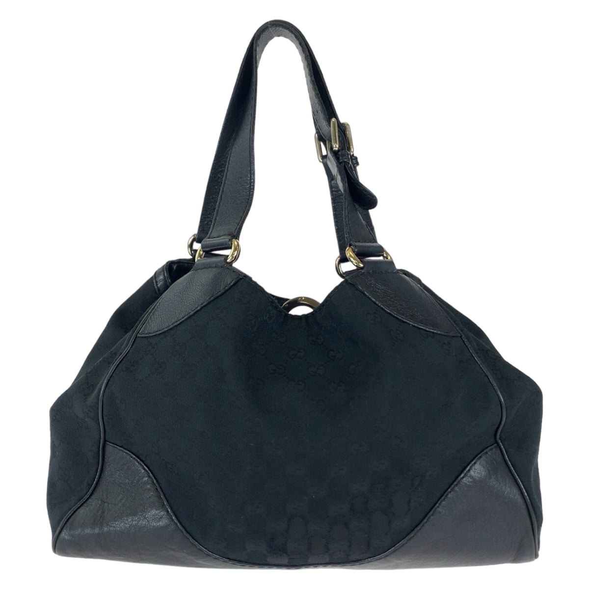 GUCCI Tote Bag 223972 GG canvas, leather Black Silver Metal Tote Bag Shoulder Bag Women Used Authentic