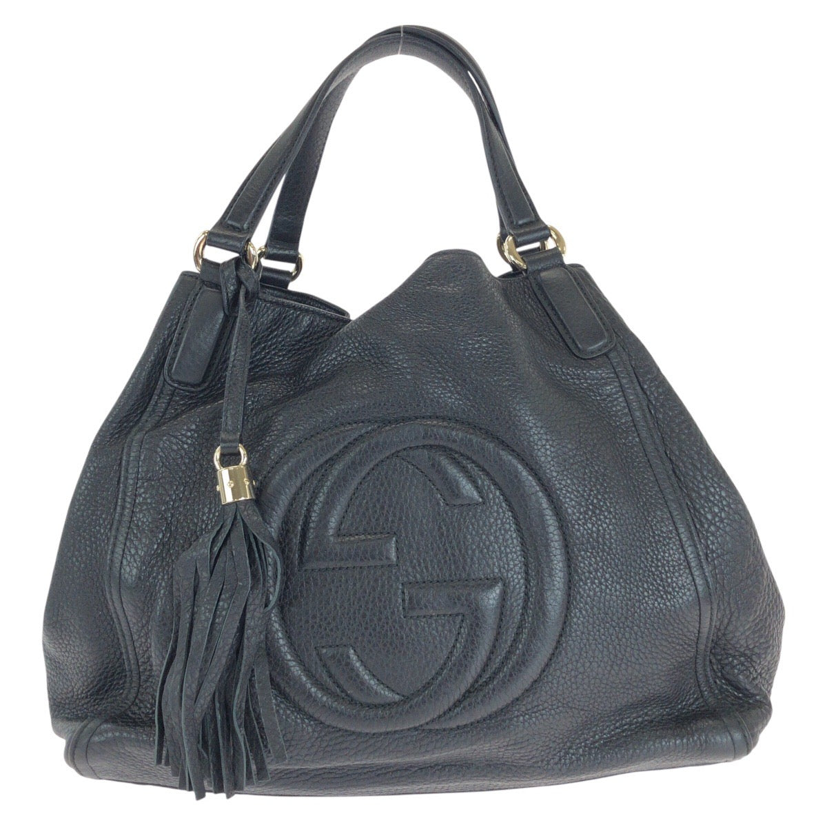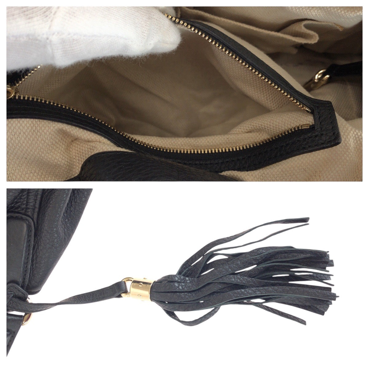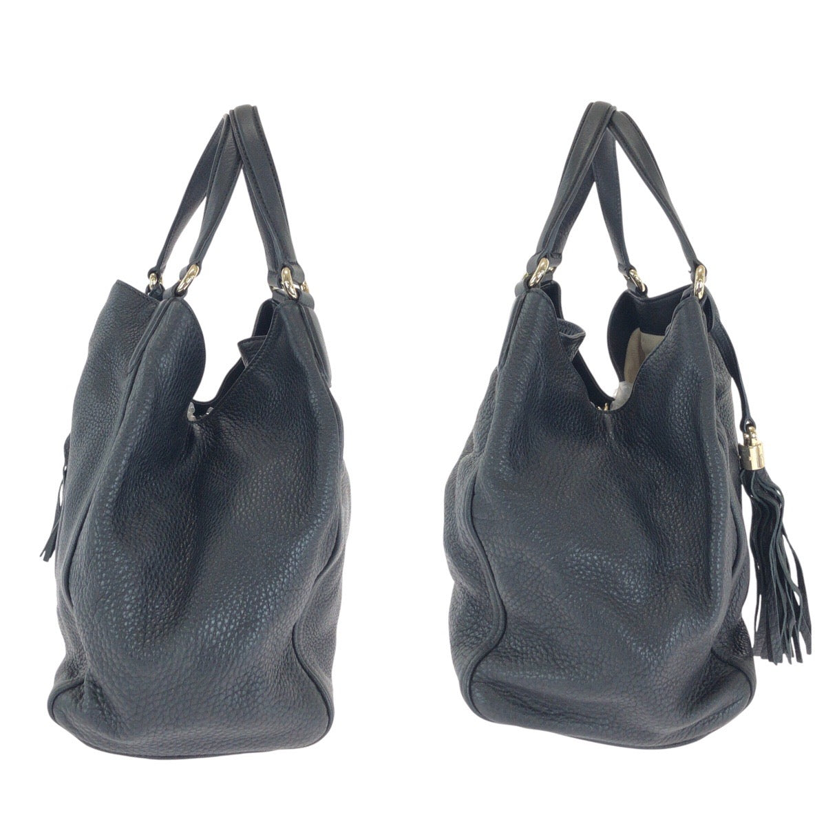 GUCCI Tote Bag 282309 leather Black GoldMetal Tote Bag Shoulder Bag Interlocking Tassels Soho Women Used Authentic