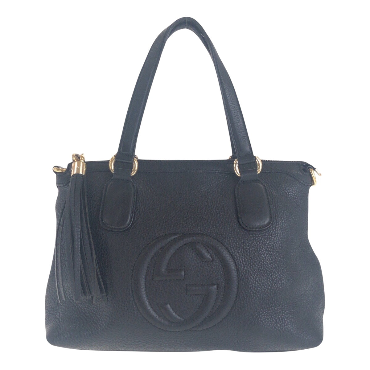 GUCCI Tote Bag 308386 leather Black GoldMetal Tote Bag handbag Soho Women Used Authentic