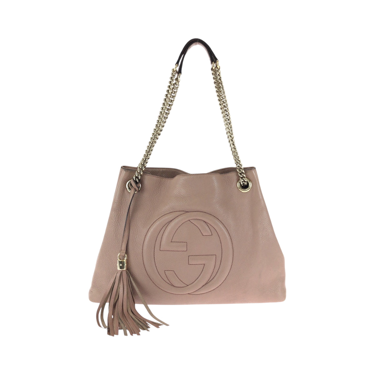 GUCCI Tote Bag 308982 leather Pink Gold Metal ChainTote Bag Shoulder Bag Soho Tassel Women Used Authentic