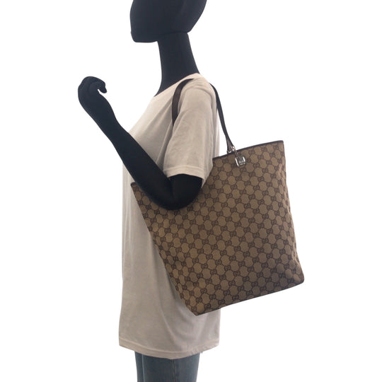 GUCCI Tote Bag 31243 GG canvas Brown Beige SilverMetal