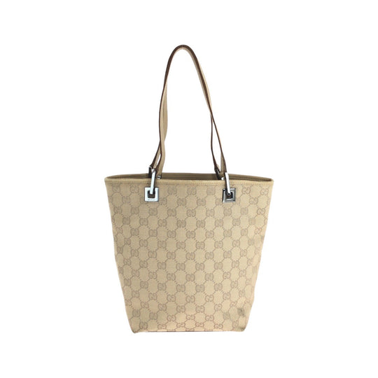 GUCCI Tote Bag 31244 GG canvas, leather Beige Brown SilverMetal Tote Bag Shoulder Bag Women Used Authentic