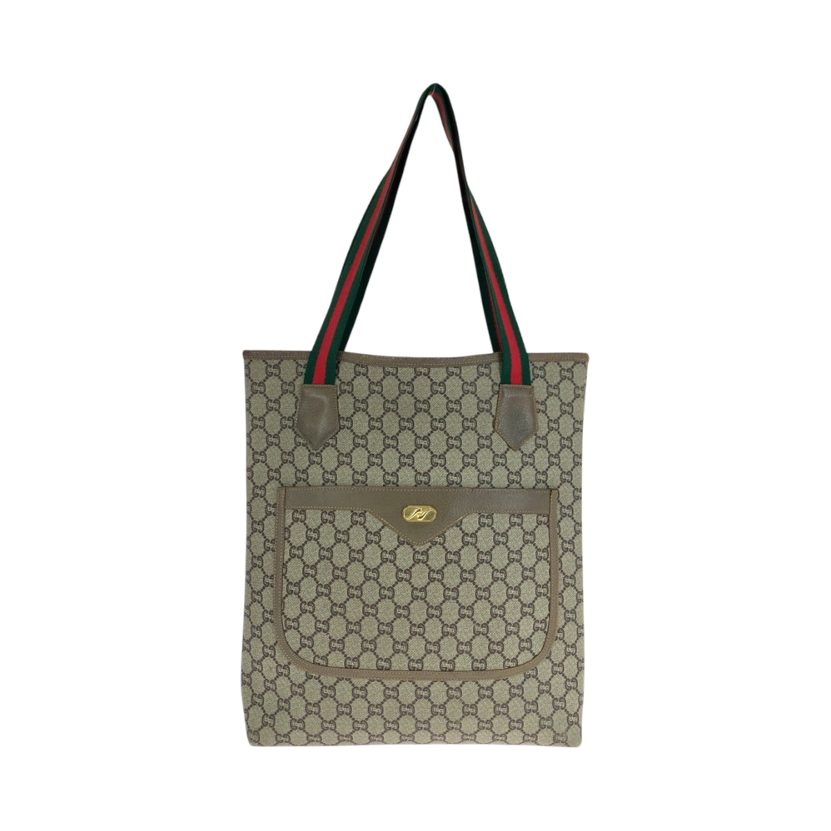 GUCCI Tote Bag GG Supreme Canvas beige Old Gucci Shelly Line GG plus
