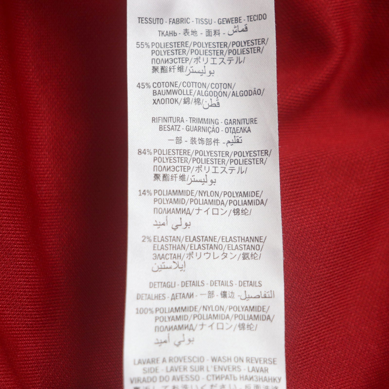 Material Outer: 55% polyester, Outer: 45% cotton, Part: 84% polyester, Part: 14% nylon, Part: 2% polyurethane