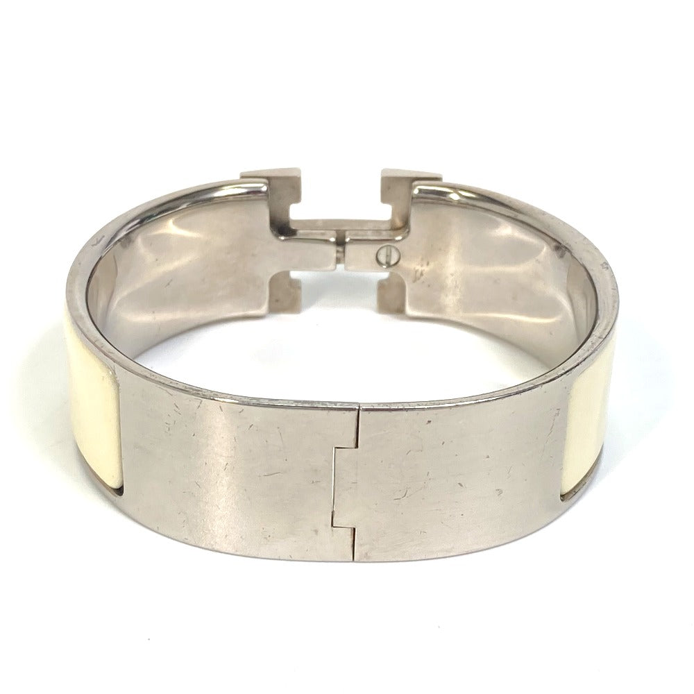 HERMES Bangle Metal, Enamel white H bangle Click Crack H GM Women Used Authentic