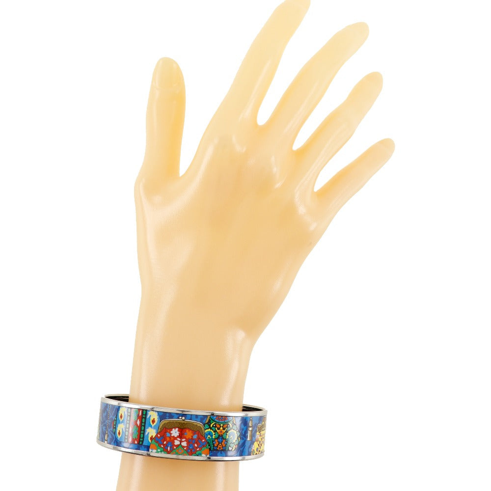 HERMES Bangle metallic Silver / blue cloisonne Emilel GM Women Used Authentic