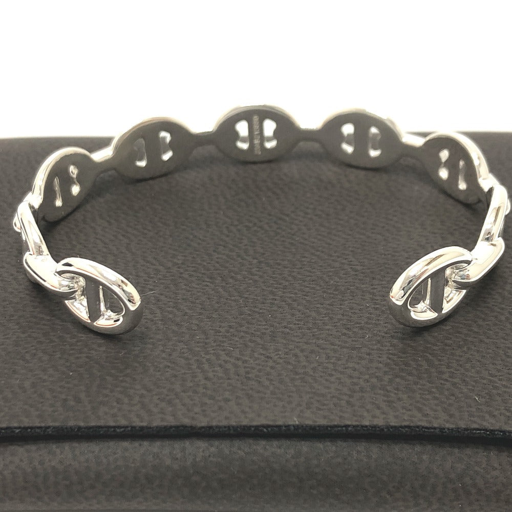 HERMES Bangle SV925 Silver Chene Dunkle Enchaine Women Used Authentic