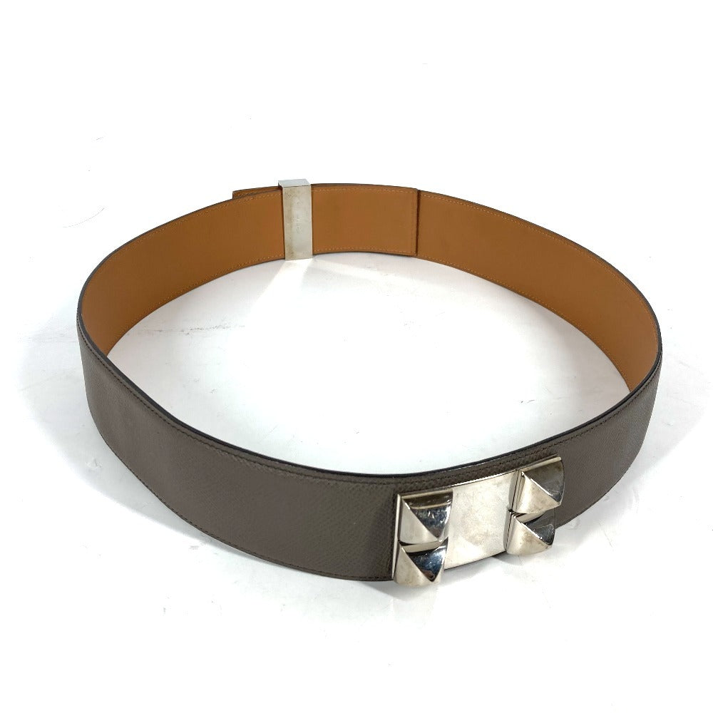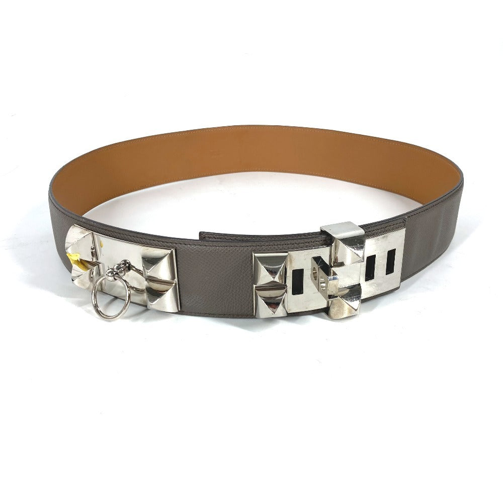 HERMES belt leather gray Collier de Chien Belt Women 90 Used Authentic