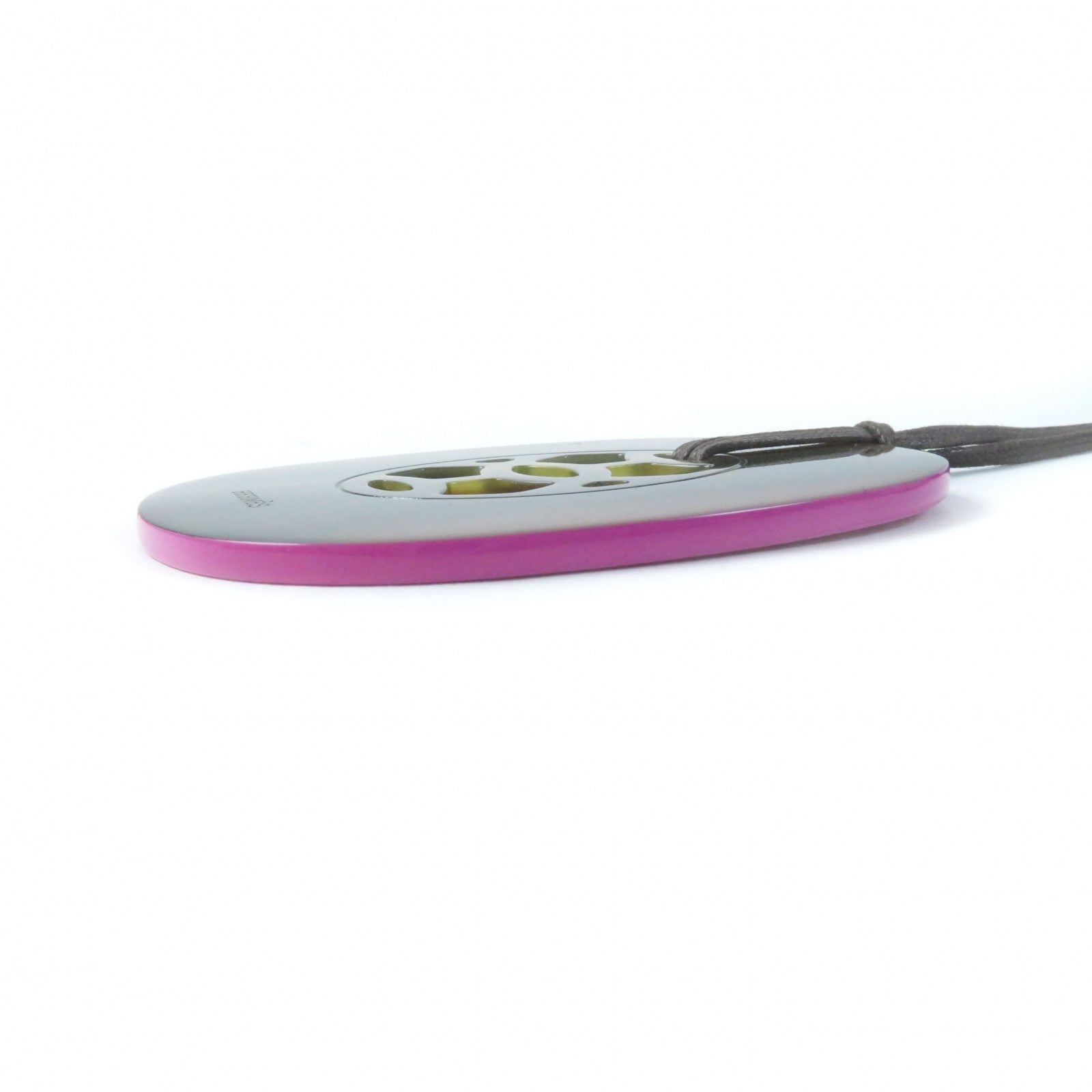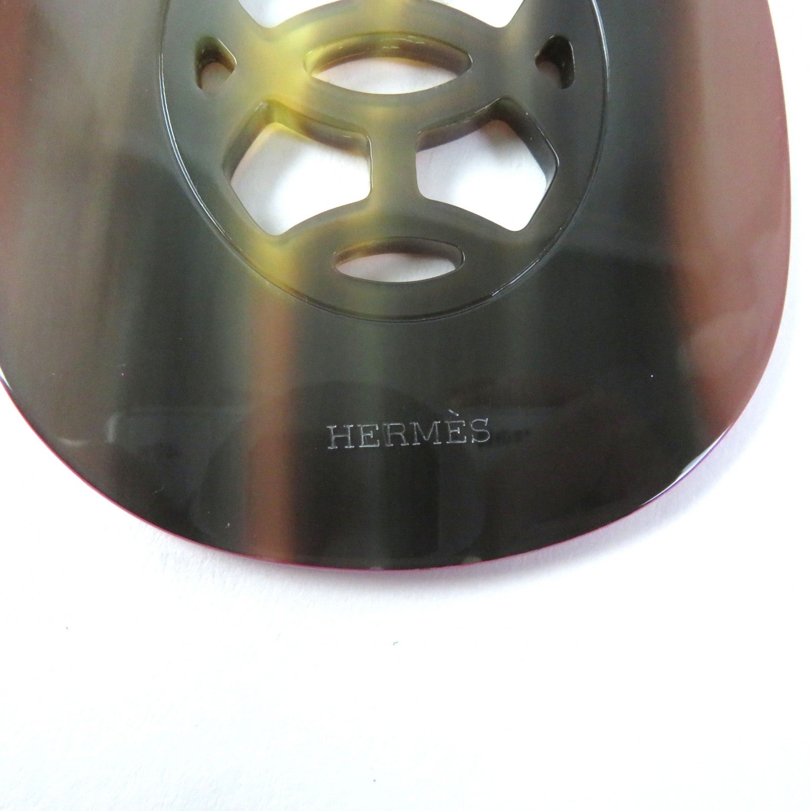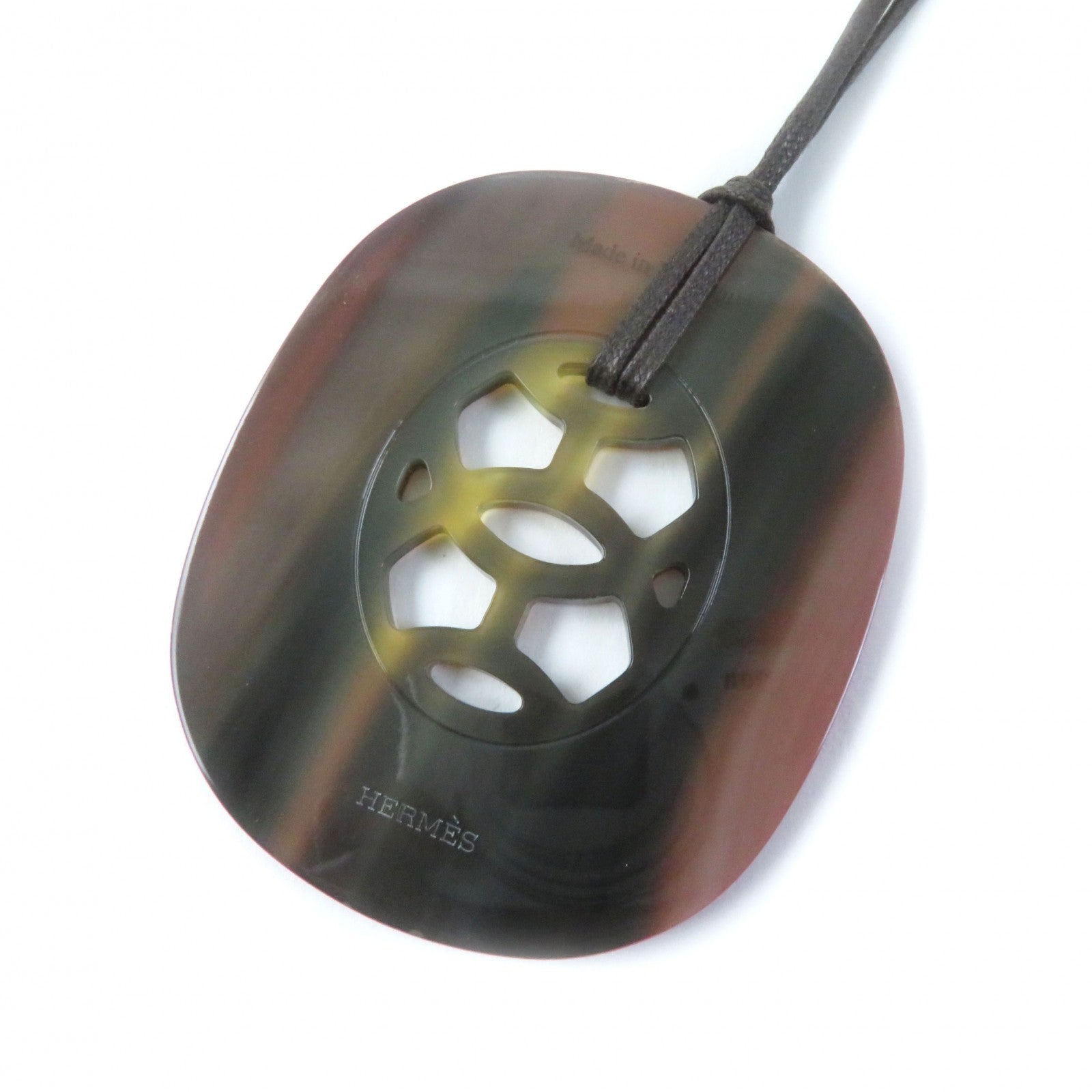 HERMES Necklace Top: Buffalo horn/Lacquer wood String: Waxed cotton Purple brown Lift GM Women Used Authentic