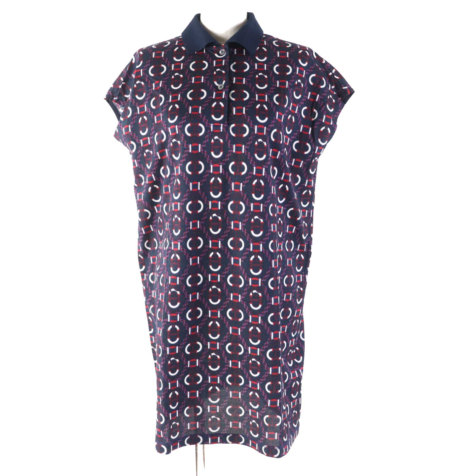 HERMES one piece 3E4512DB Main: 100% cotton, part: 70% cotton, part: 26% nylon, part: 4% polyurethane Navy red white Canoe Women 34 Used Authentic