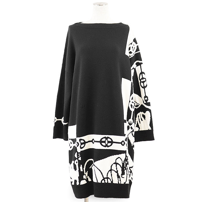 HERMES one piece 100% cashmere [Other fabric] 70% cotton, 30% polyester Black, White 2E2506D2 Women 38 Used Authentic