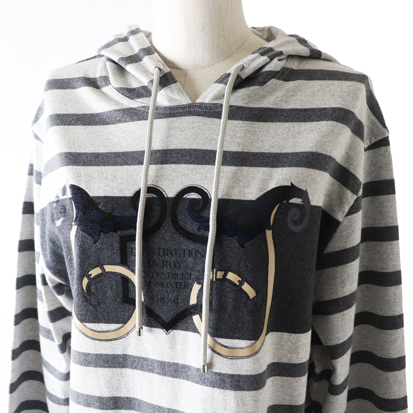 HERMES one piece Outer: 100% cotton, Rib: 82% cotton, 16% nylon, 2% polyurethane Gray Border Pattern L'Instruction du Roy Women 34 Used Authentic