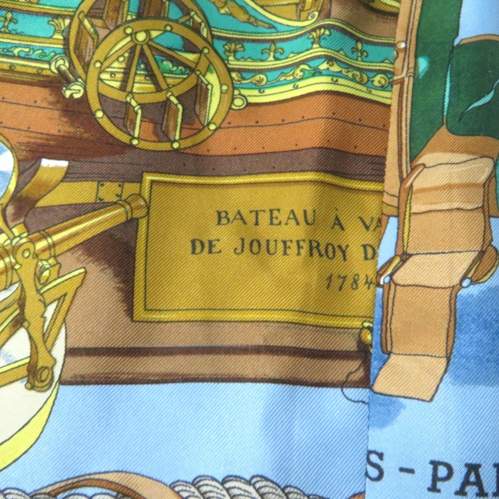 HERMES one piece Main: 100% silk Multi BATEAU A VAPEUR DE JOUFFROY DABBANS 1784 Steamboat Women 40 Used Authentic