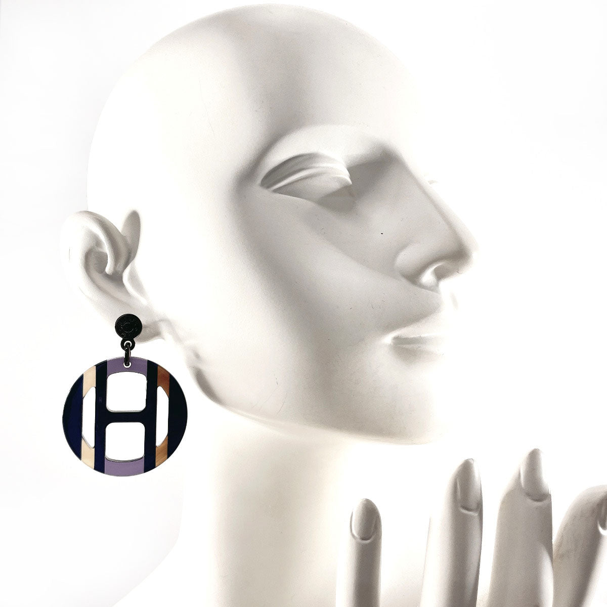 HERMES Pierce Buffalo Horn, Metal Navy H Equip Women Used Authentic