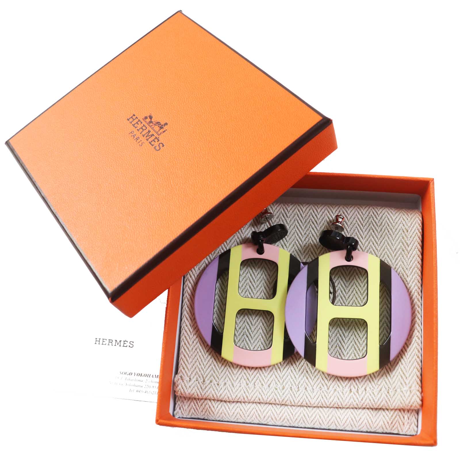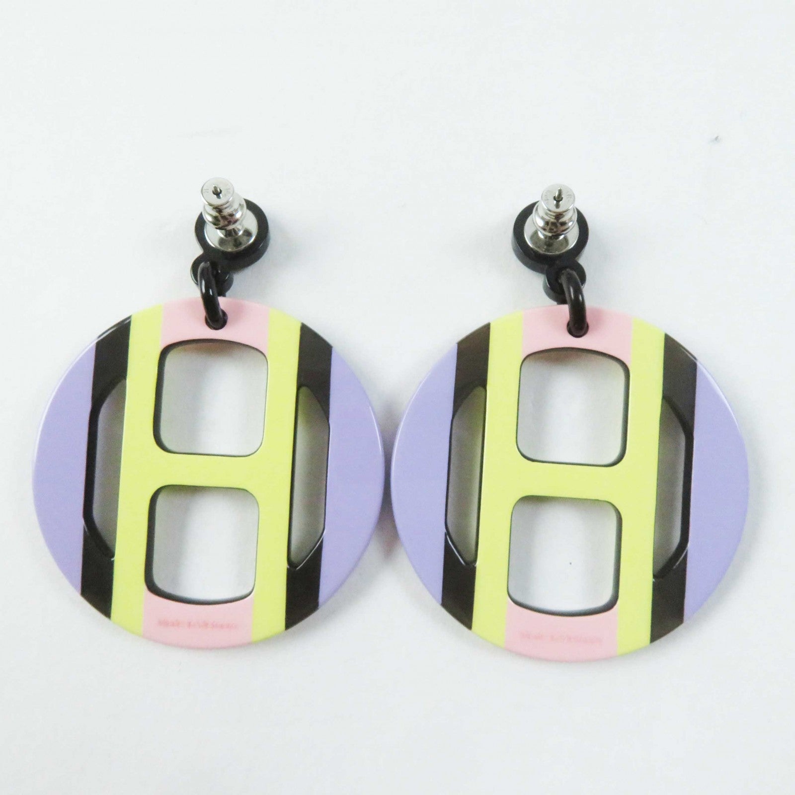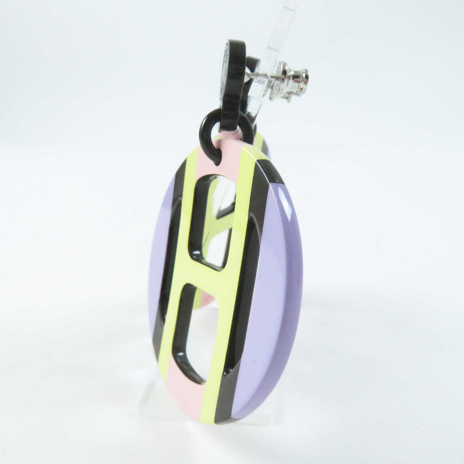 HERMES Pierce Buffalo horn Multi H Equipe Earrings Women Used Authentic