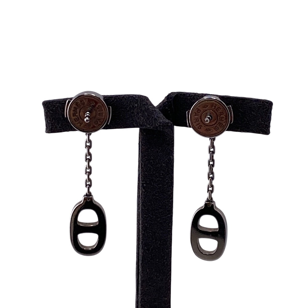 HERMES Pierce Gold Plated Silver Chene Dunkle Women Used Authentic