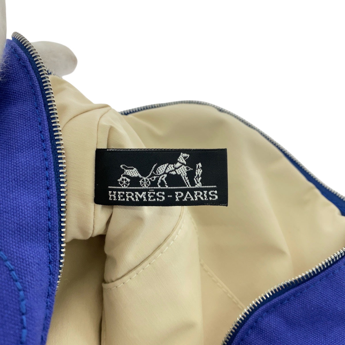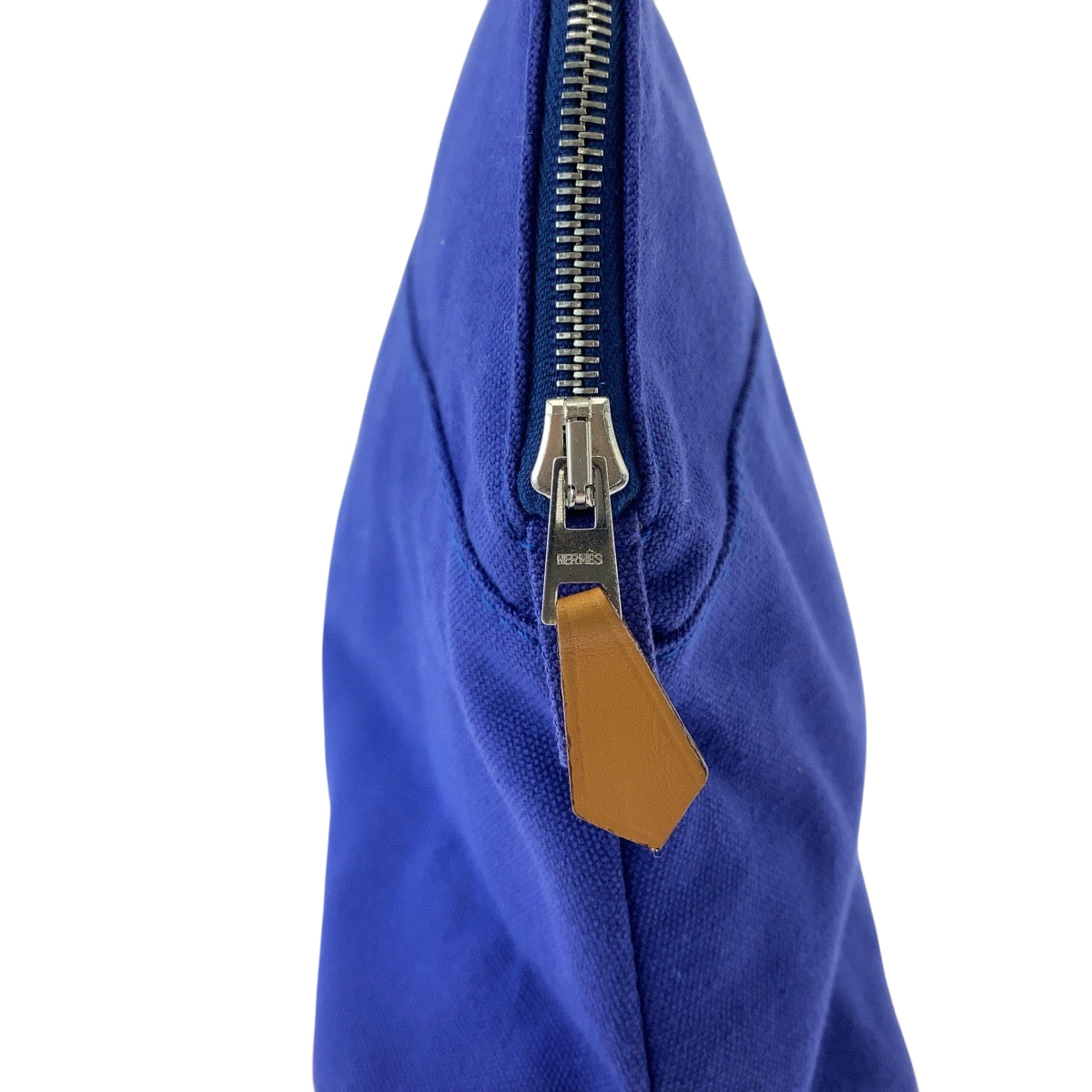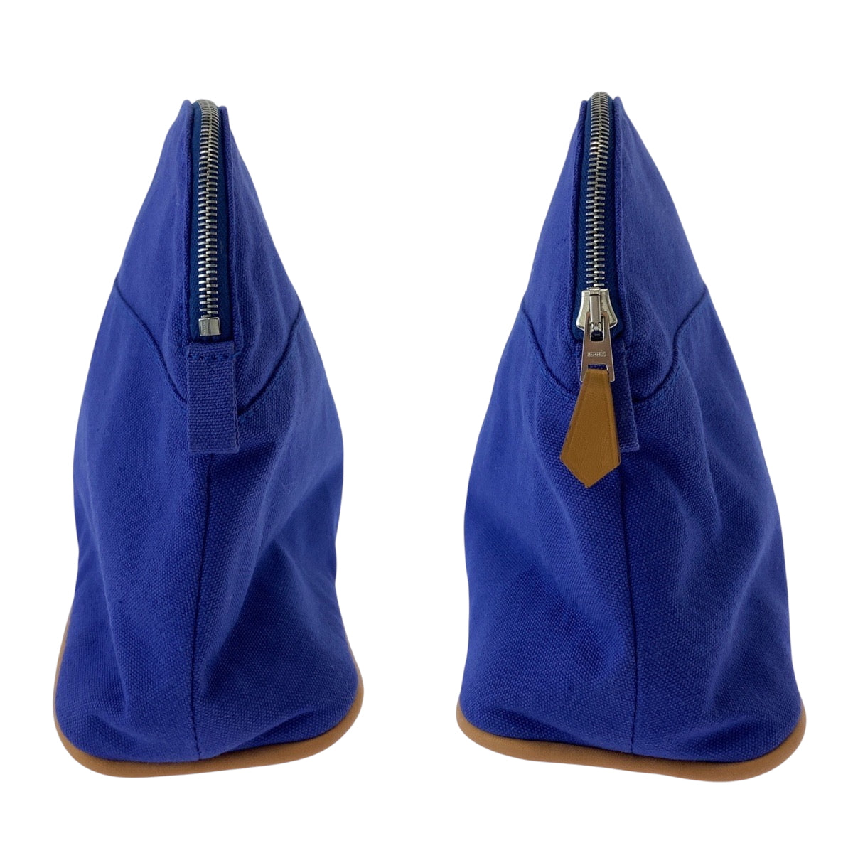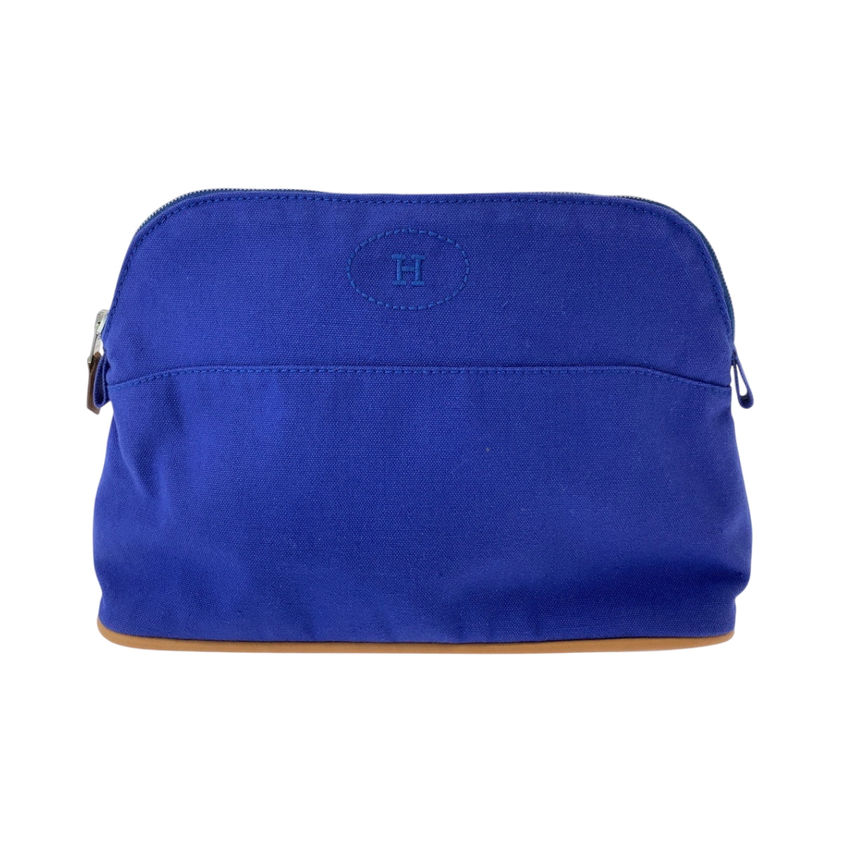 HERMES Pouch cotton Blue Brown SilverMetal Pouch Cosmetics Pouch Bored Women Used Authentic