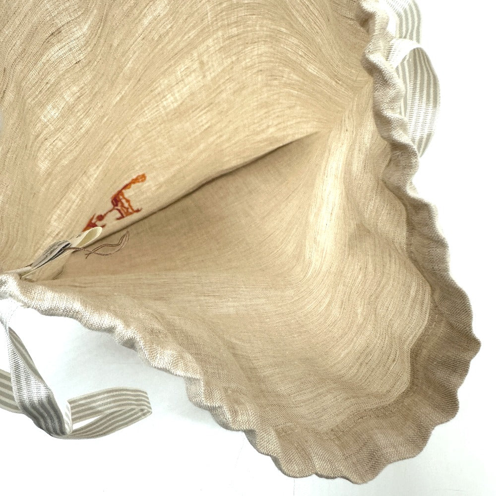 HERMES Pouch hemp beige H embroidery Women Used Authentic