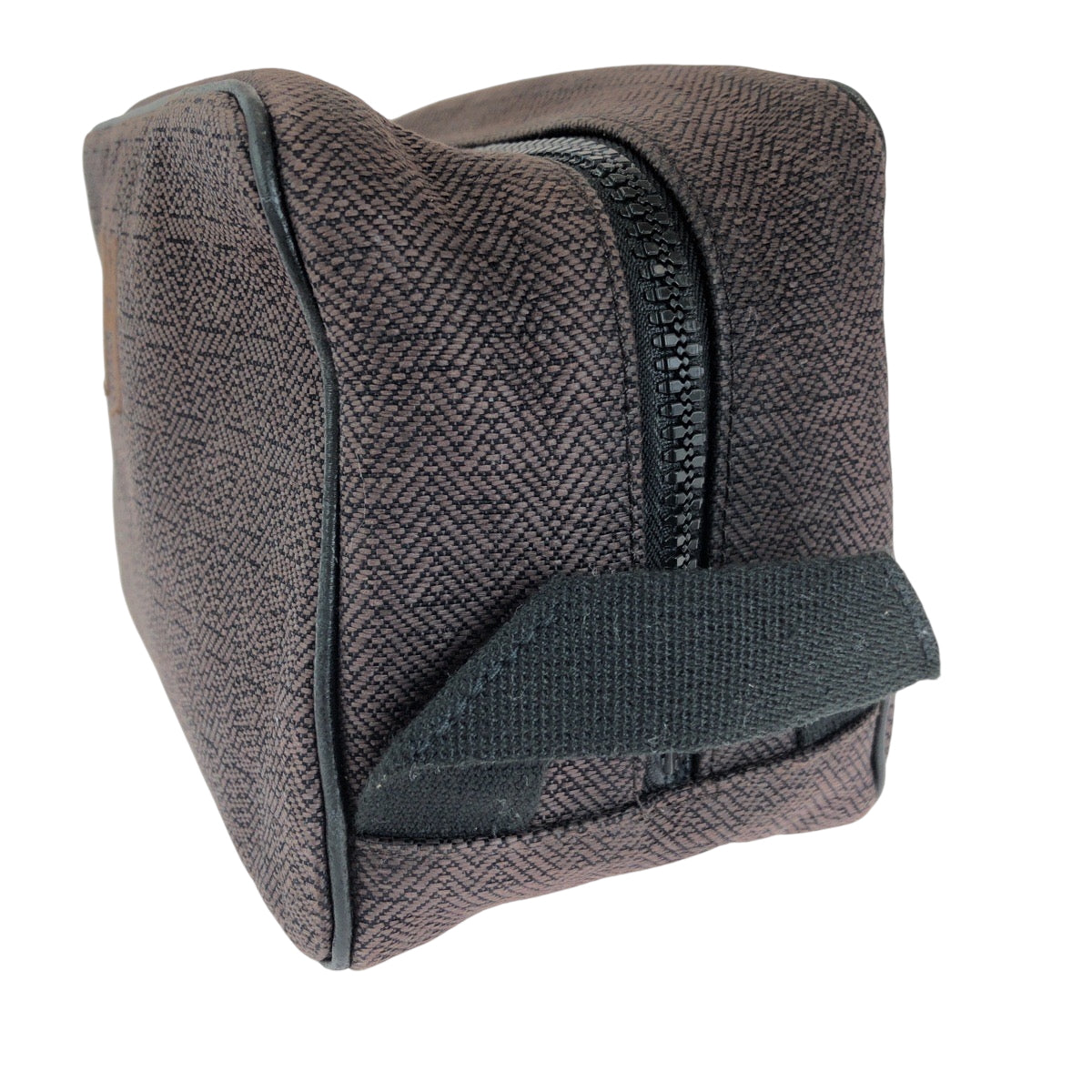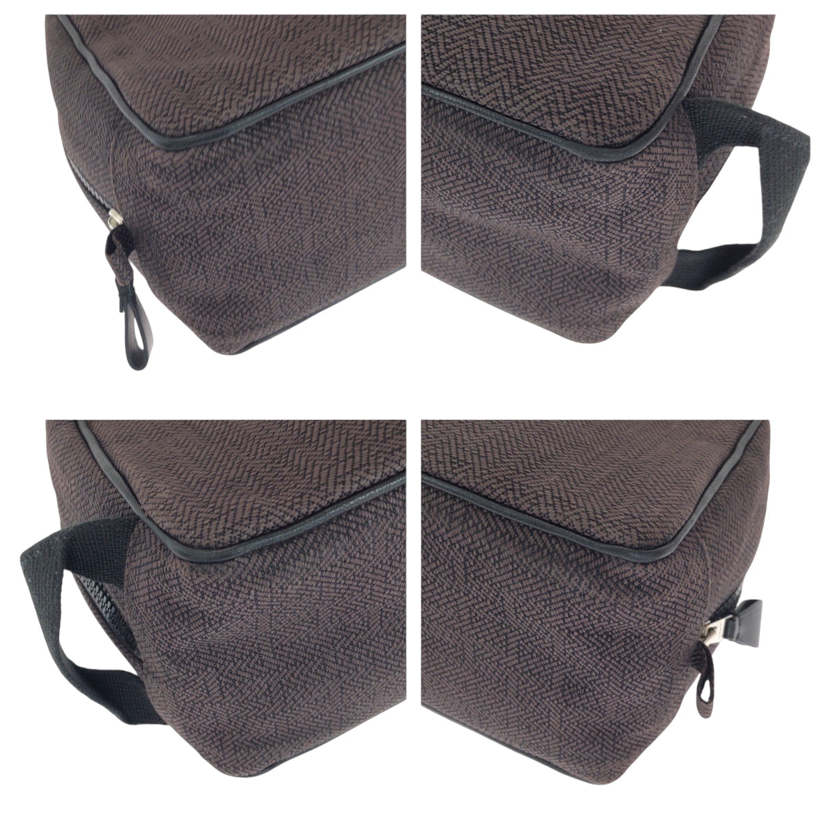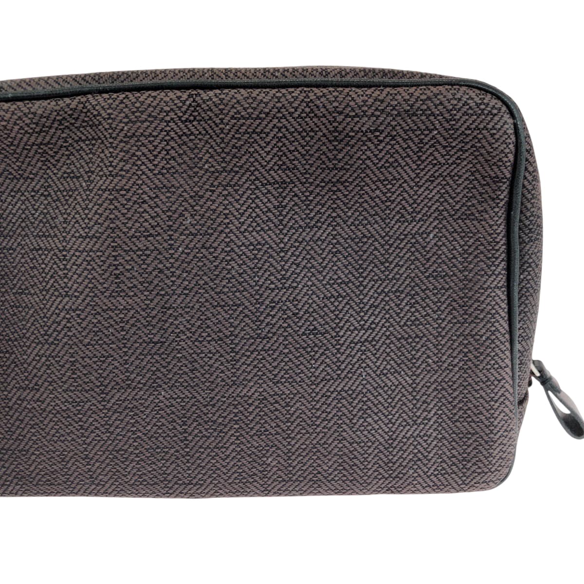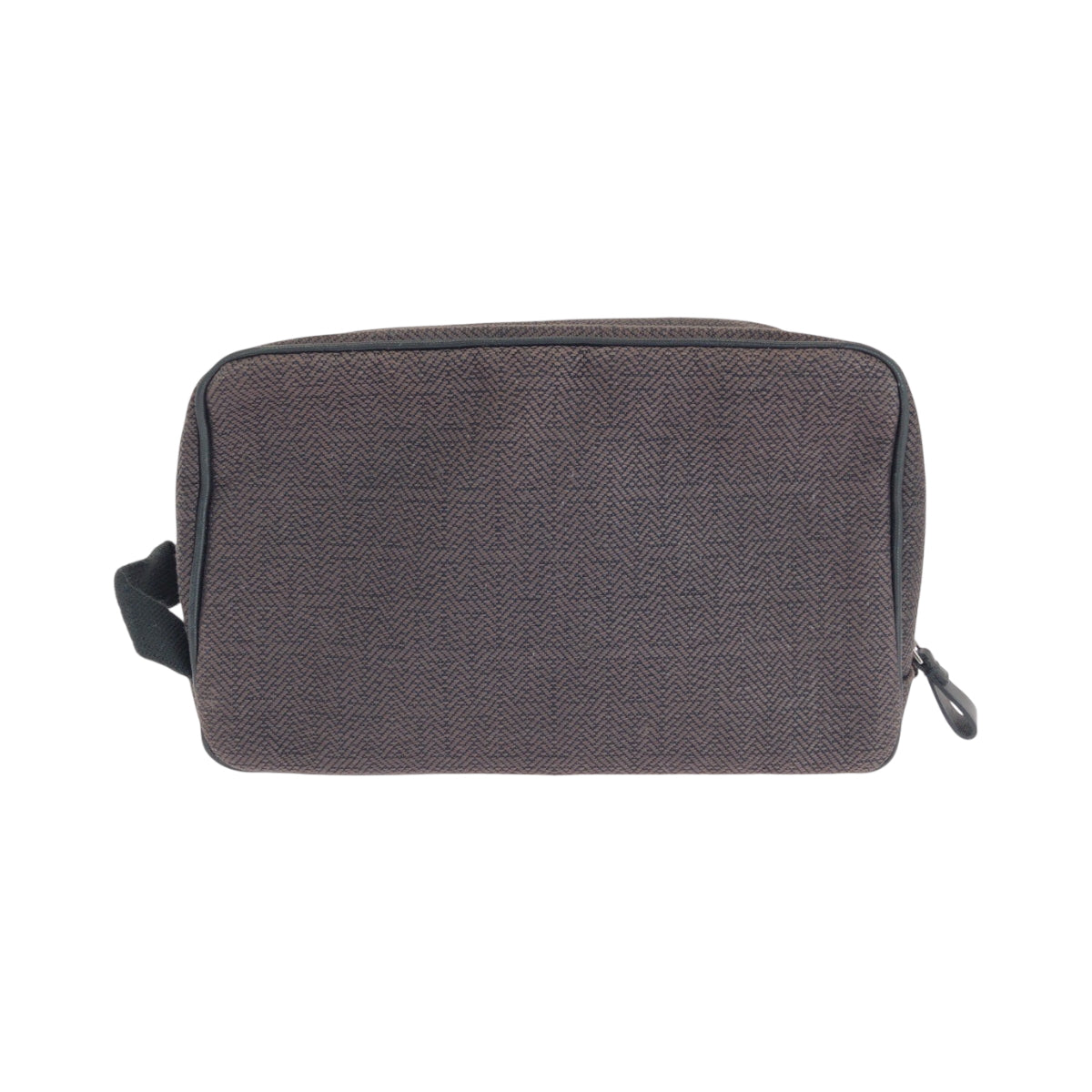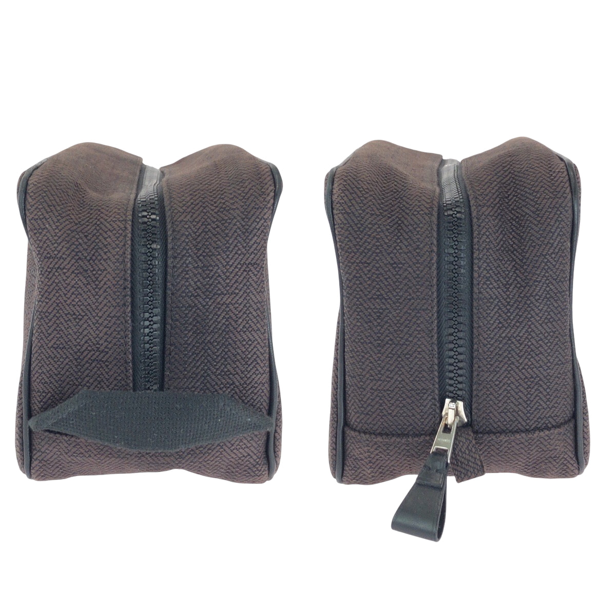 HERMES Pouch Towal chevron Brown Silver Metal Pouch business bag Globetrotter MM Women Used Authentic