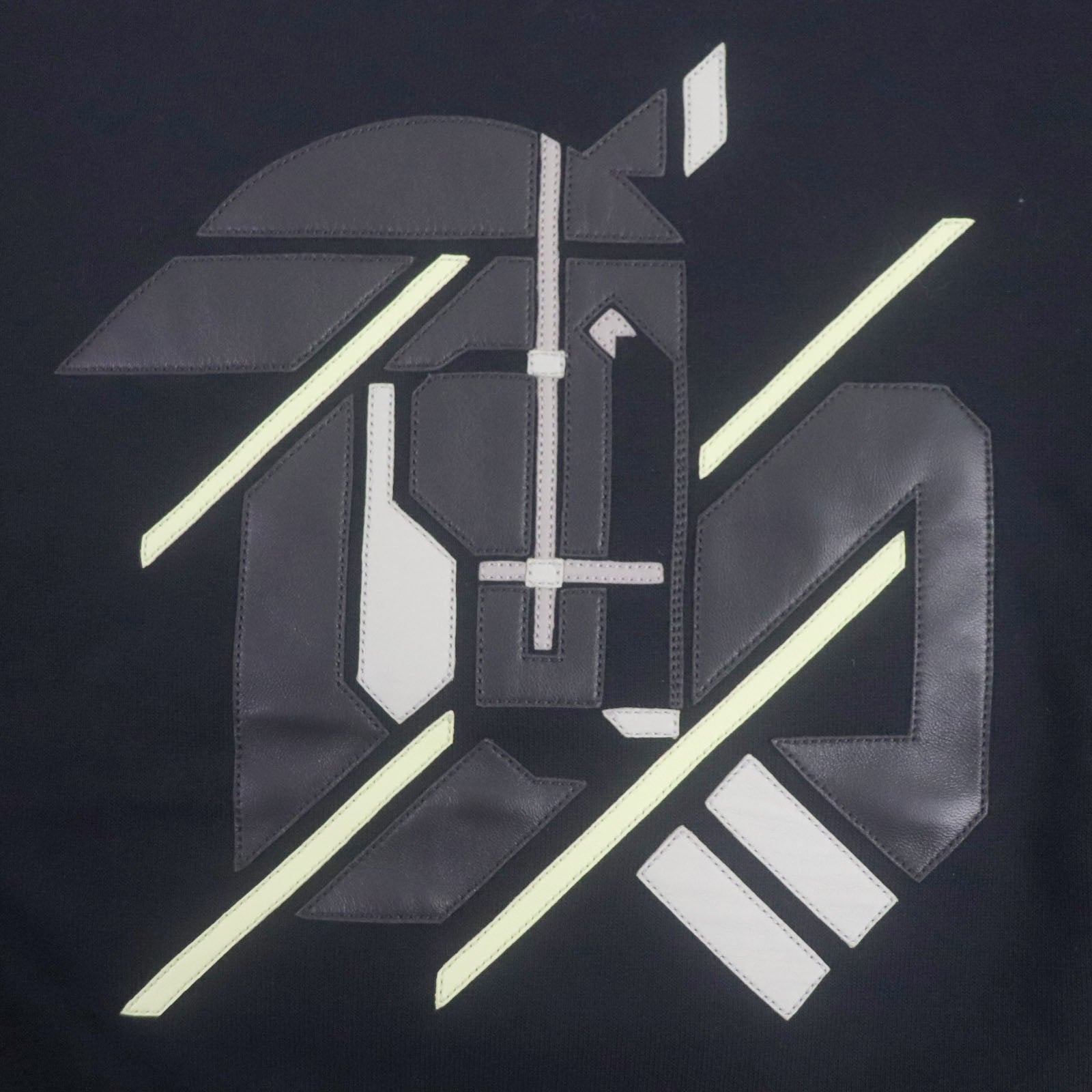 HERMES pullover Main: 100% cotton, Leather: Sheepskin Rib: 90% cotton, 10% polyurethane Navy Chevaux Symetrie mens M Used Authentic