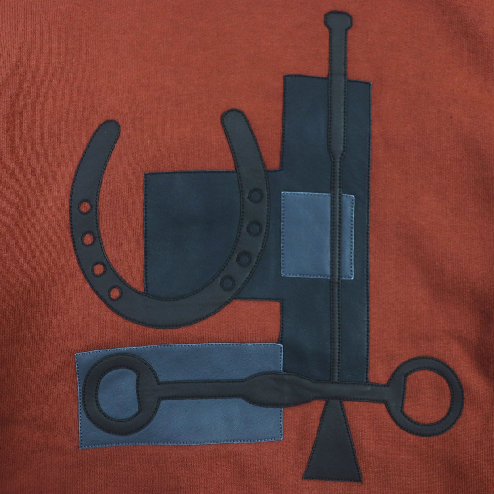 HERMES pullover Main: 100% cotton, Leather part: Sheepskin Cord: 100% cotton Knit part: 90% cotton : 10% polyurethane Red brown Sport capsule hooded sweater mens XS Used Authentic