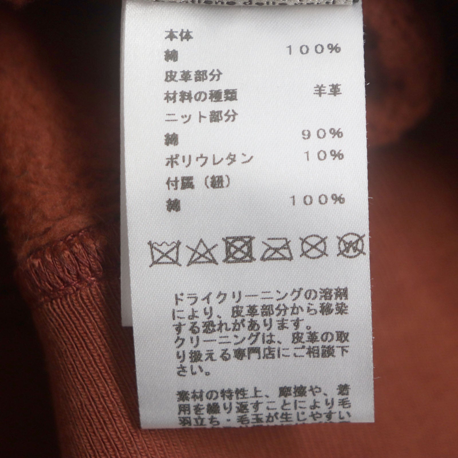 Material Main: 100% cotton, Leather part: Sheepskin Cord: 100% cotton Knit part: 90% cotton : 10% polyurethane