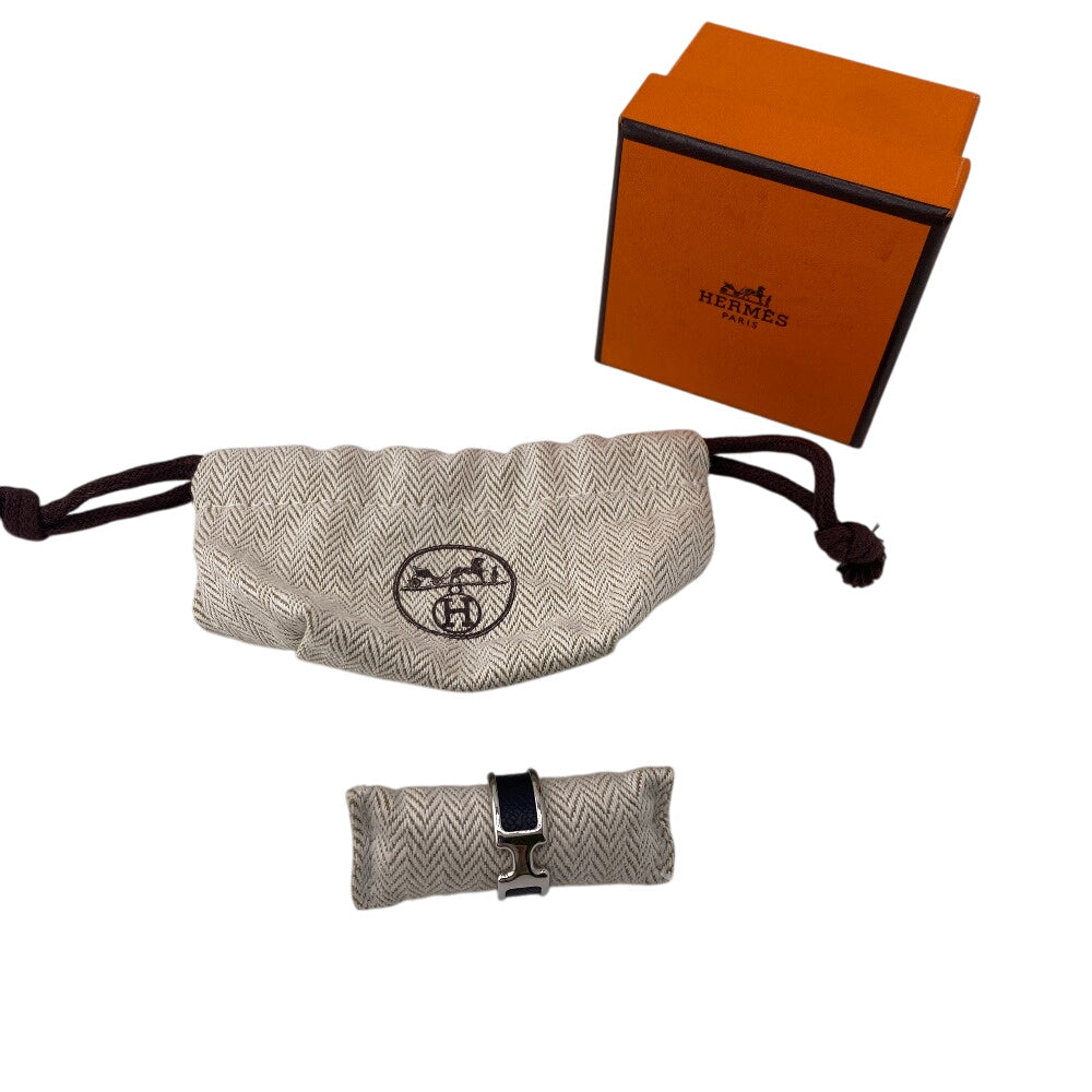 HERMES Ring Gold Plated, Leather black Olympe mens Used Authentic