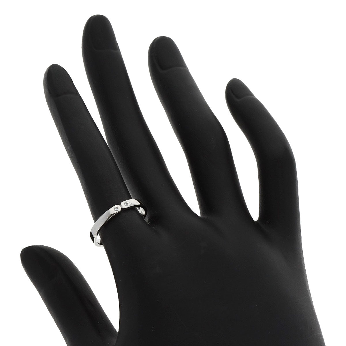 HERMES Ring PT950 Silver Ever Kelly 2P Diamond #51 Women Used Authentic