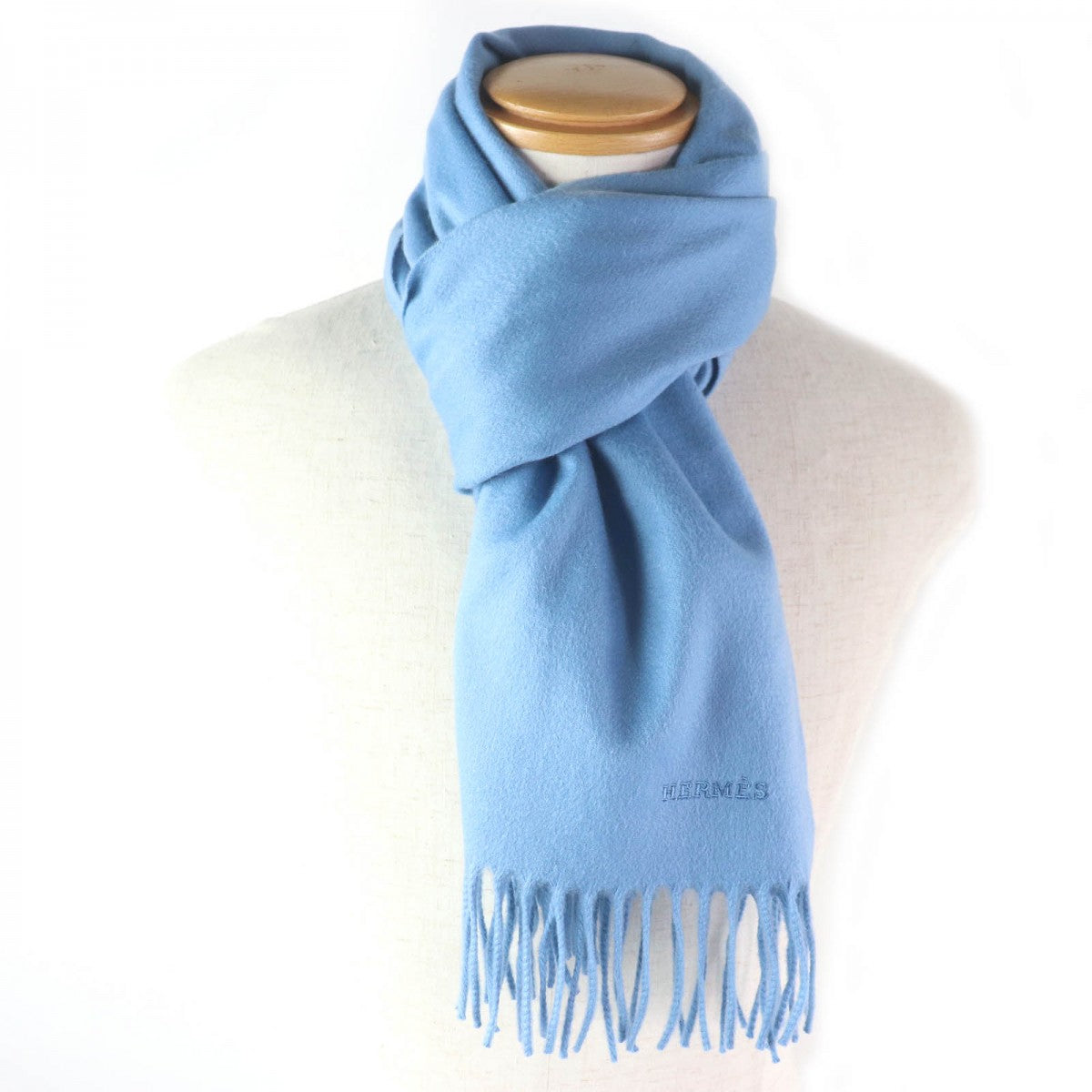 HERMES Scarf Main: 100% cashmere blue mens Used Authentic