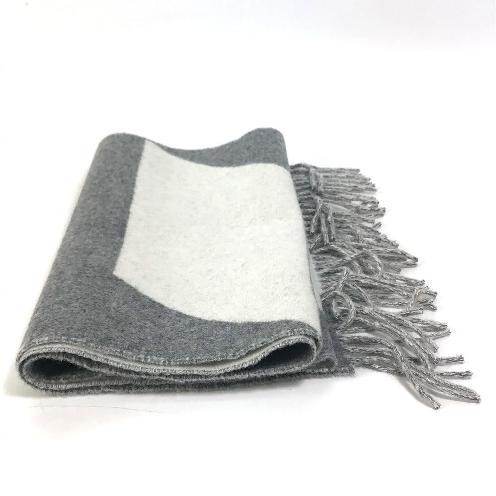 HERMES Scarf cashmere Gray x white Kazak Optic Women Used Authentic