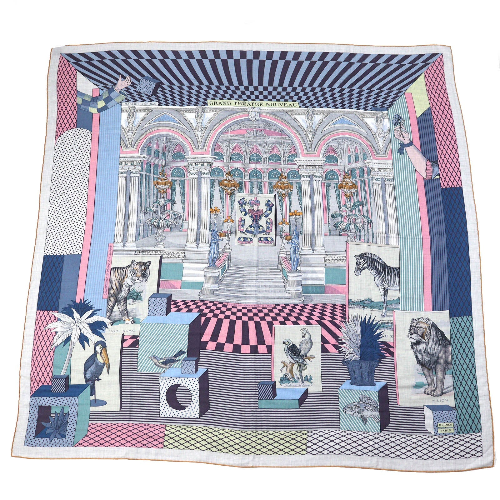 HERMES scarf Main: 70% cashmere, Main: 30% silk Gris Chine/Bleu/Rose Carre140 GRAND THEATRE NOUVEAU Women Used Authentic
