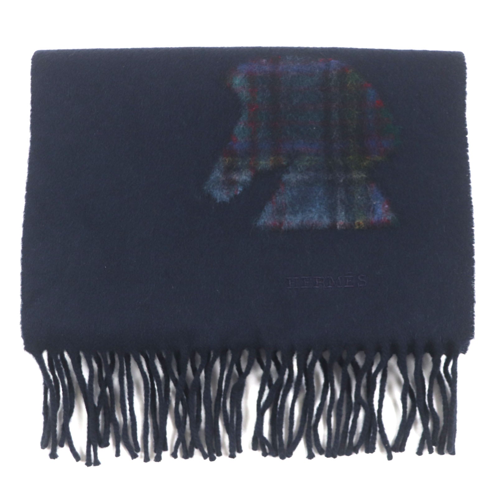 HERMES Scarf Main: 100% cashmere Navy Highlands mens Used Authentic