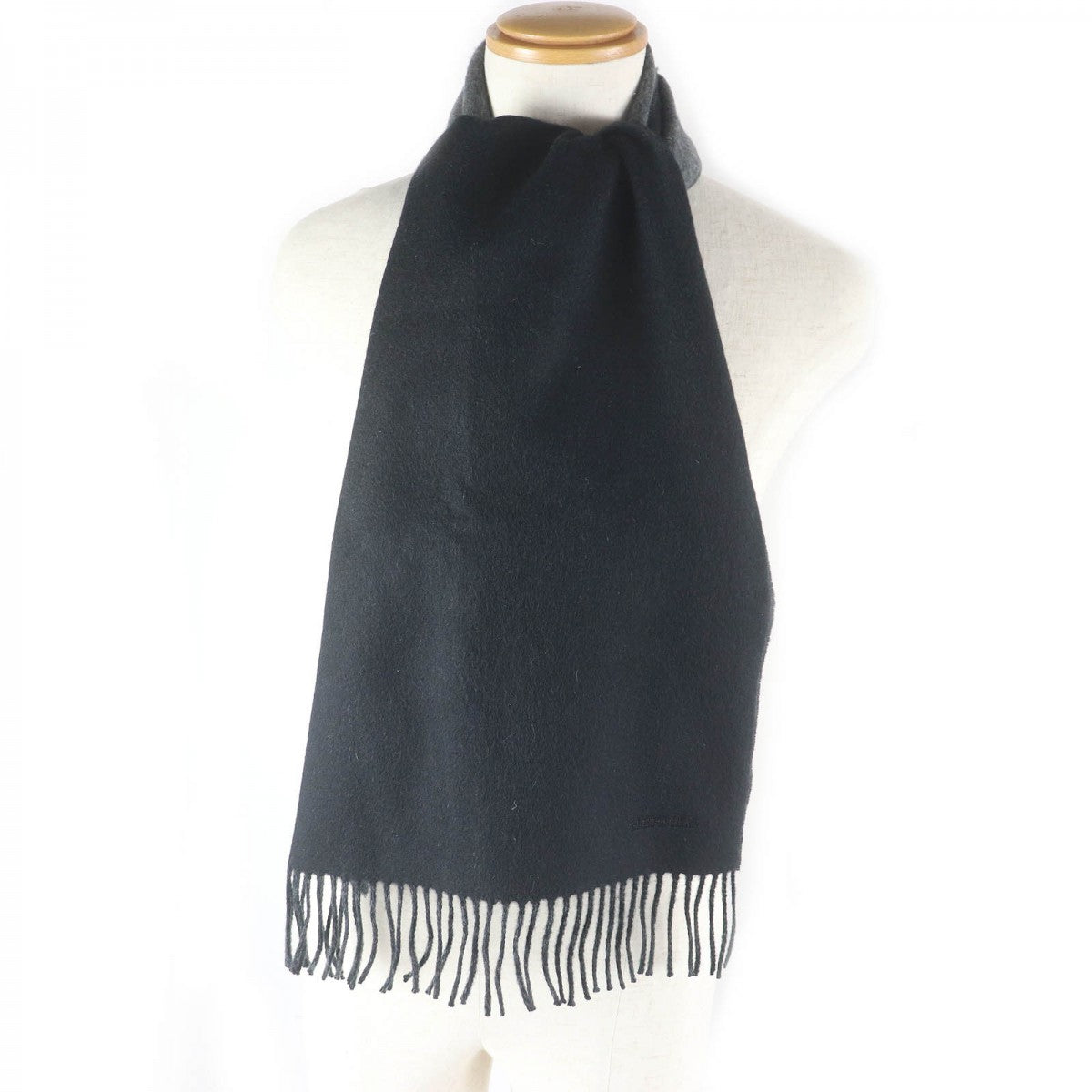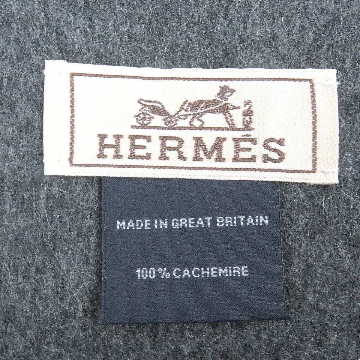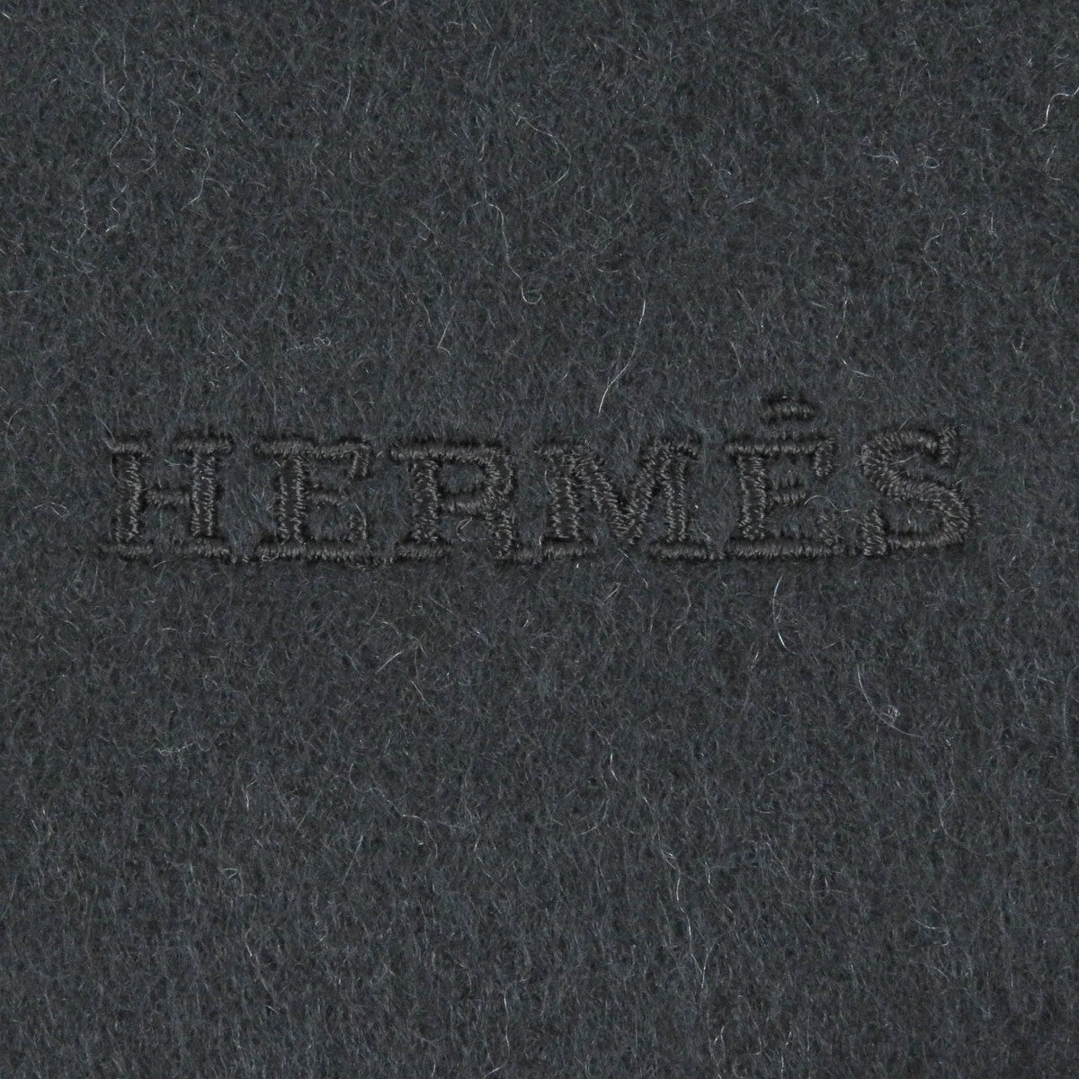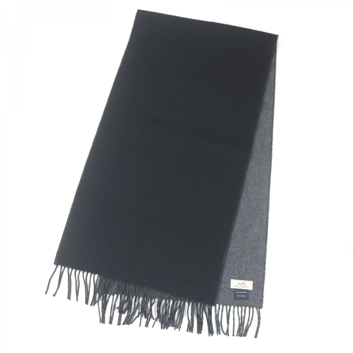 HERMES Scarf H393800T Main: 100% cashmere Black Grey Recto Verso mens Used Authentic