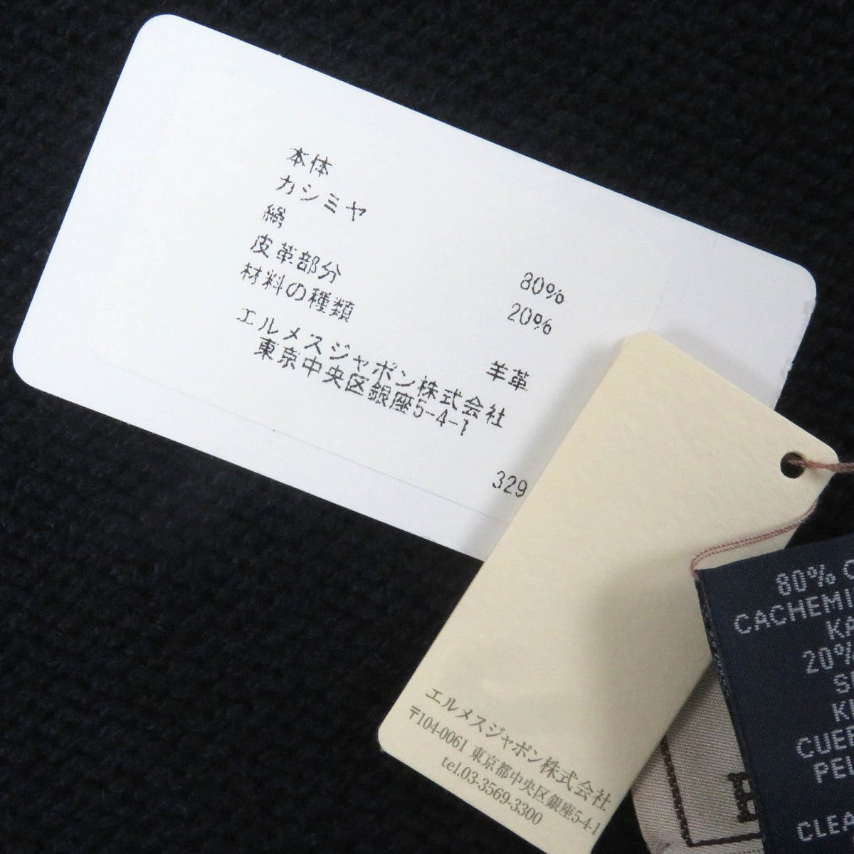 HERMES Scarf H393803T Main: 80% cashmere, Main: 20% silk, Part: Lamb leather Navy Puzzle Equestre mens Used Authentic