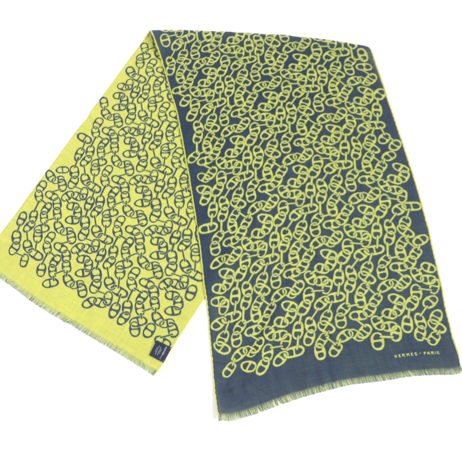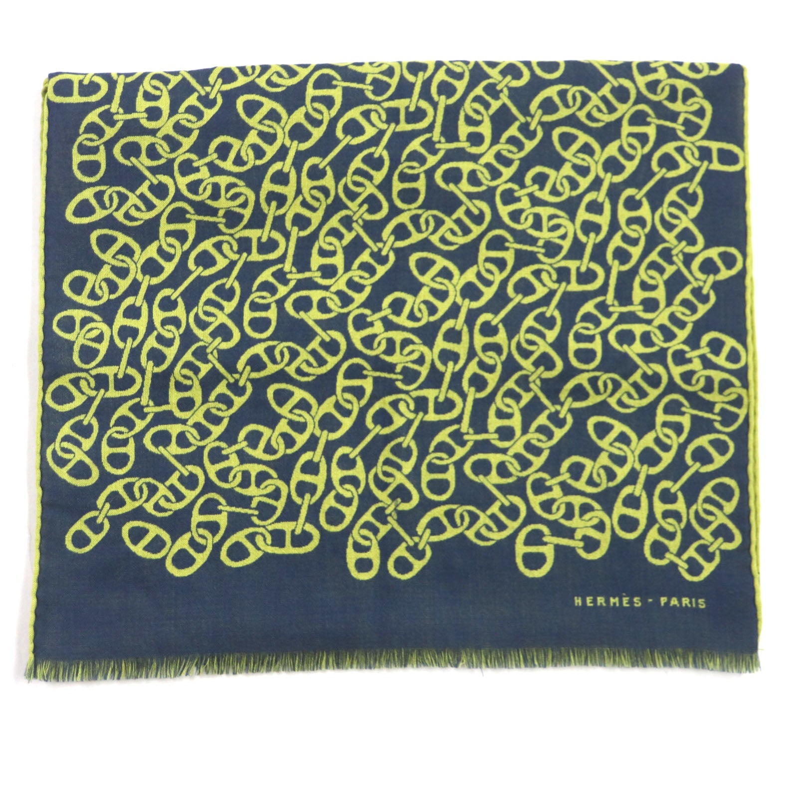 HERMES Scarf H706094T Main: 70% cashmere, Main: 30% silk Blue Ocean Citron Nausa mens Used Authentic