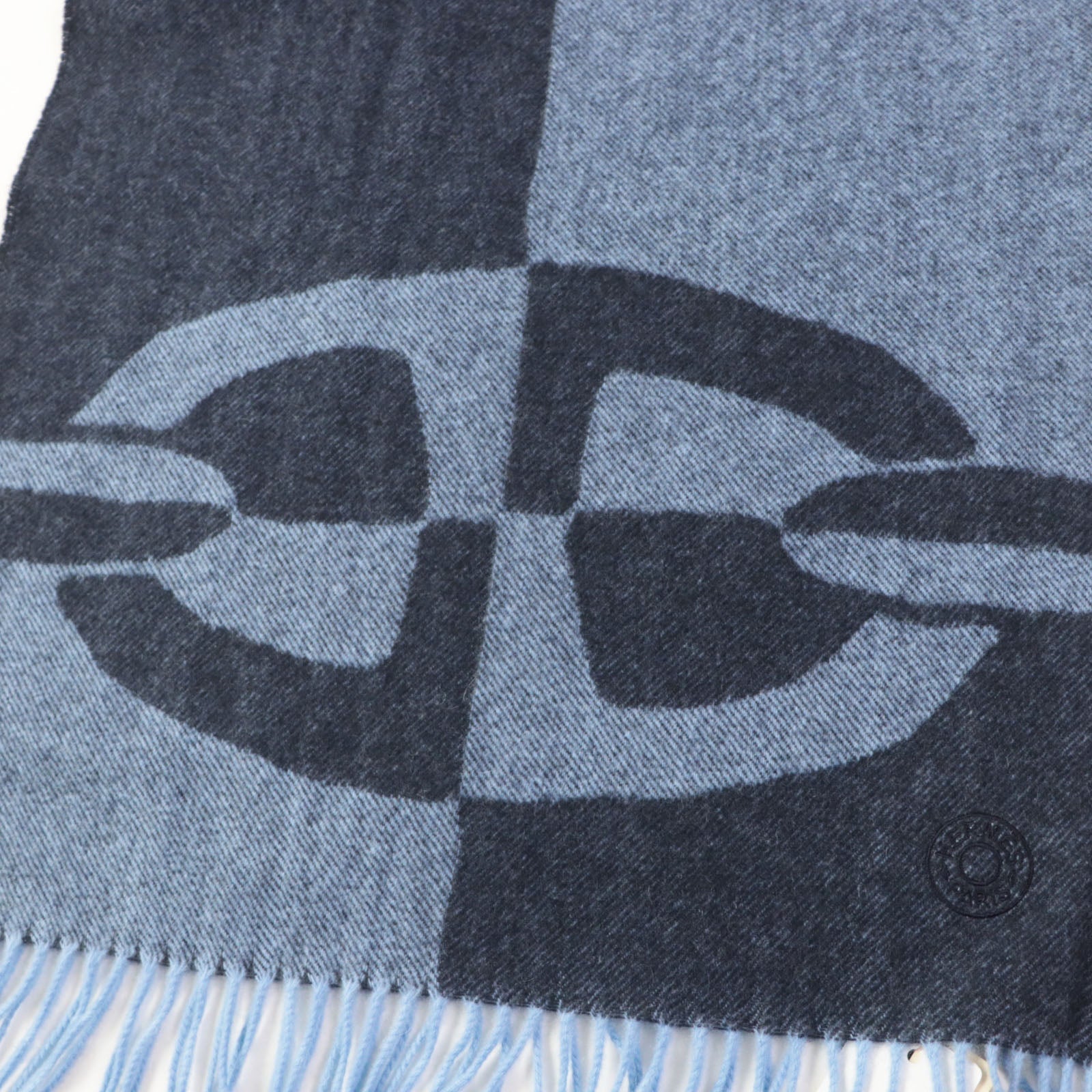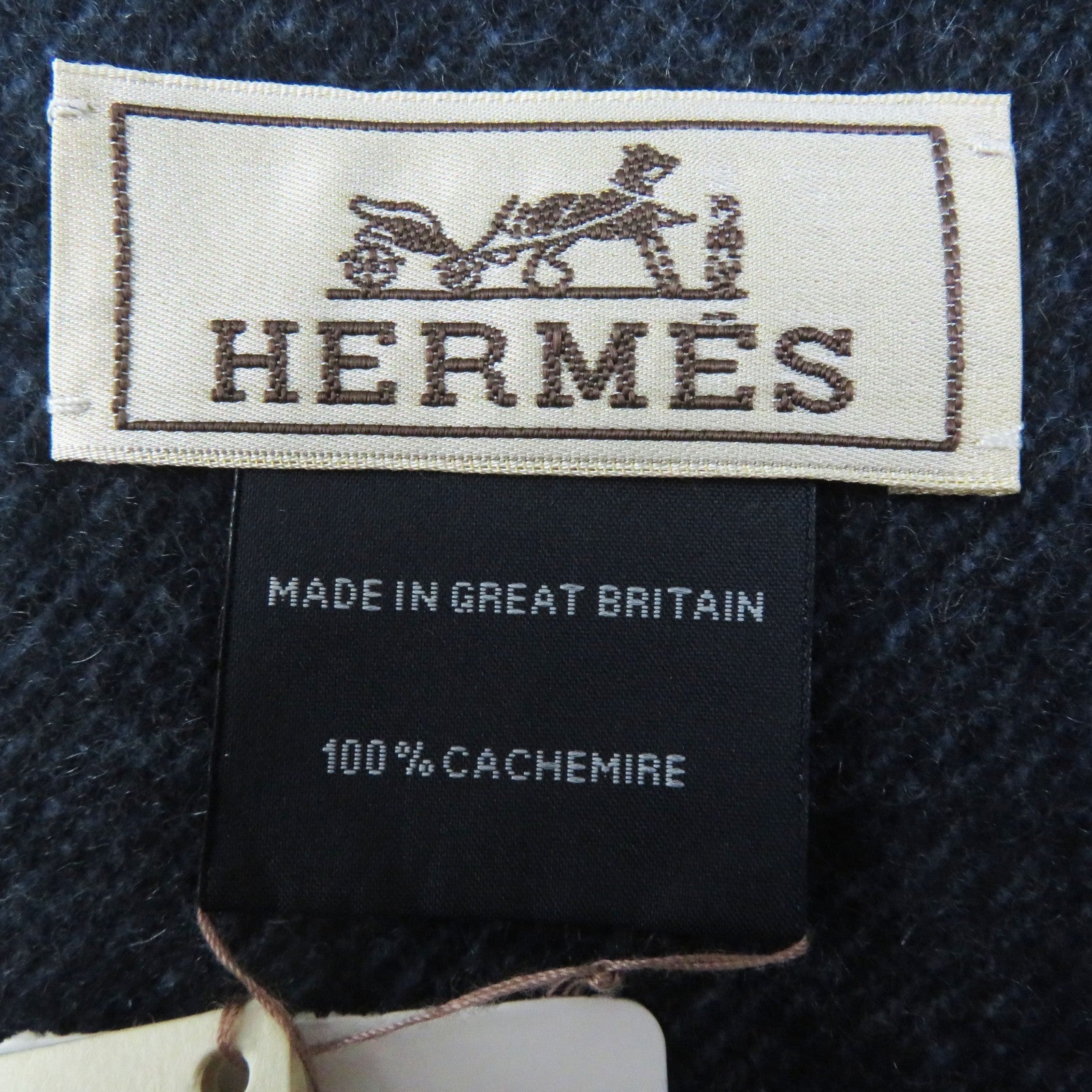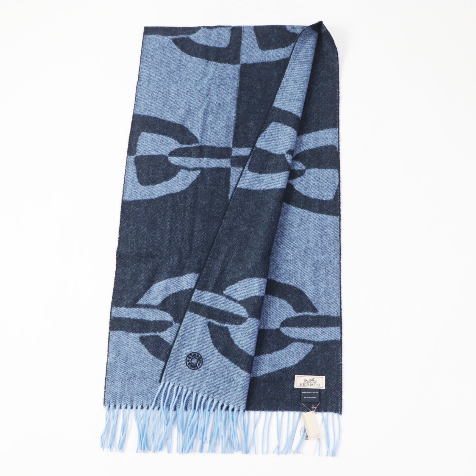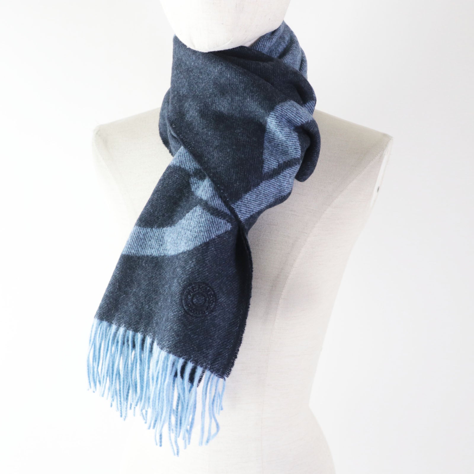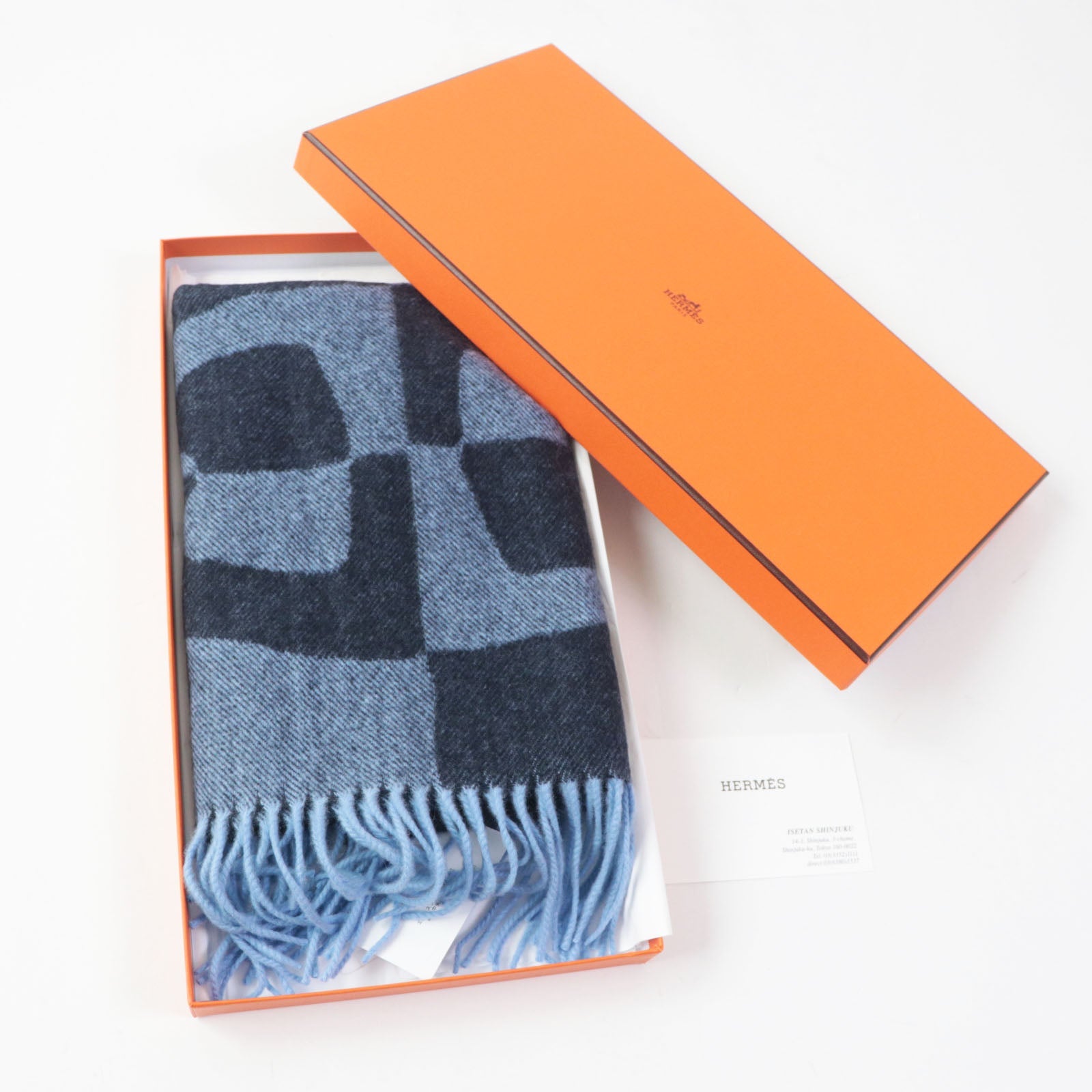 HERMES Scarf Main: 100% cashmere Marine Ciel Chene Dunkle Optic Women Used Authentic