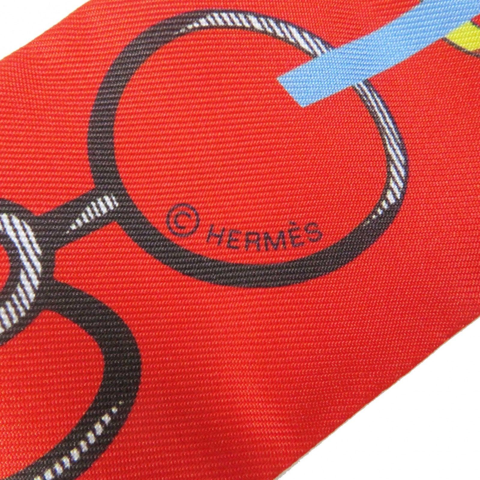 HERMES scarf Main: 100% silk Cream/Rouge/Blue Do Re Boucles Twilly Women Used Authentic