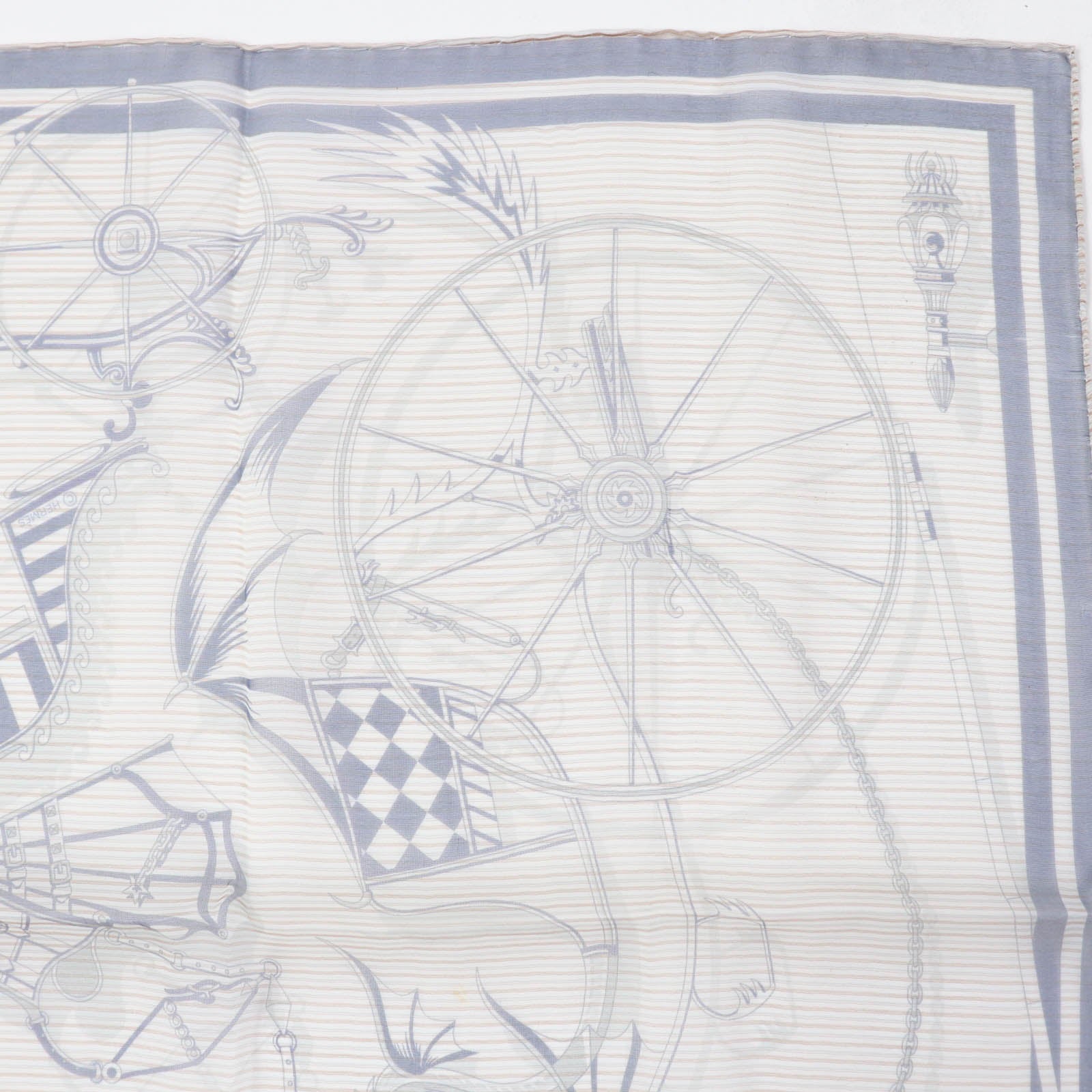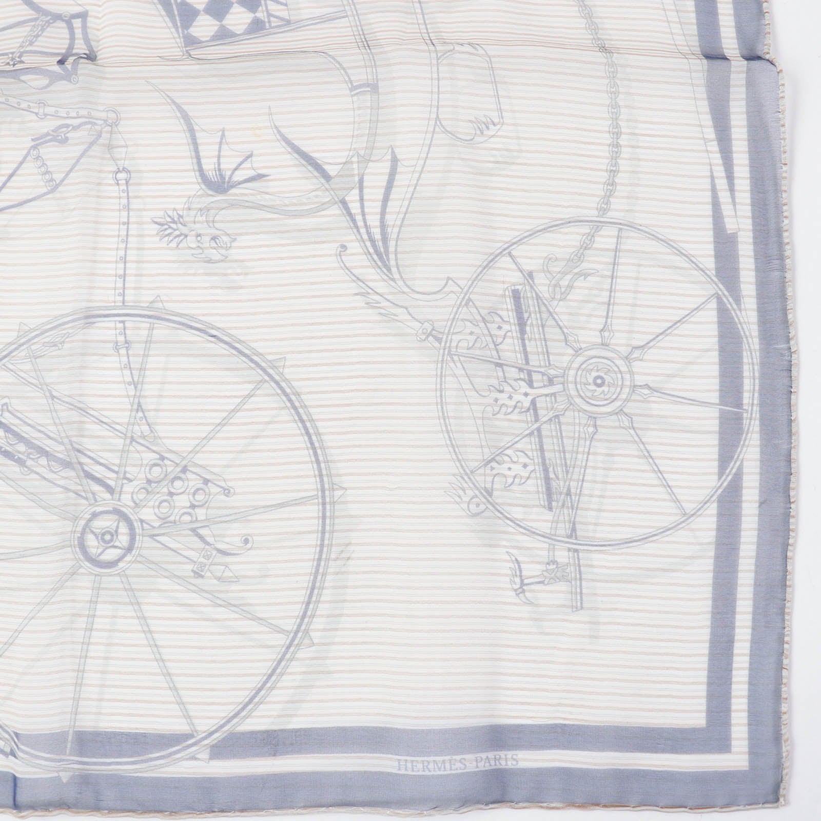 HERMES scarf Main: 100% silk Marine / Blanc / Gris VOITURES EN EQUILIBRE Carre45 Women Used Authentic