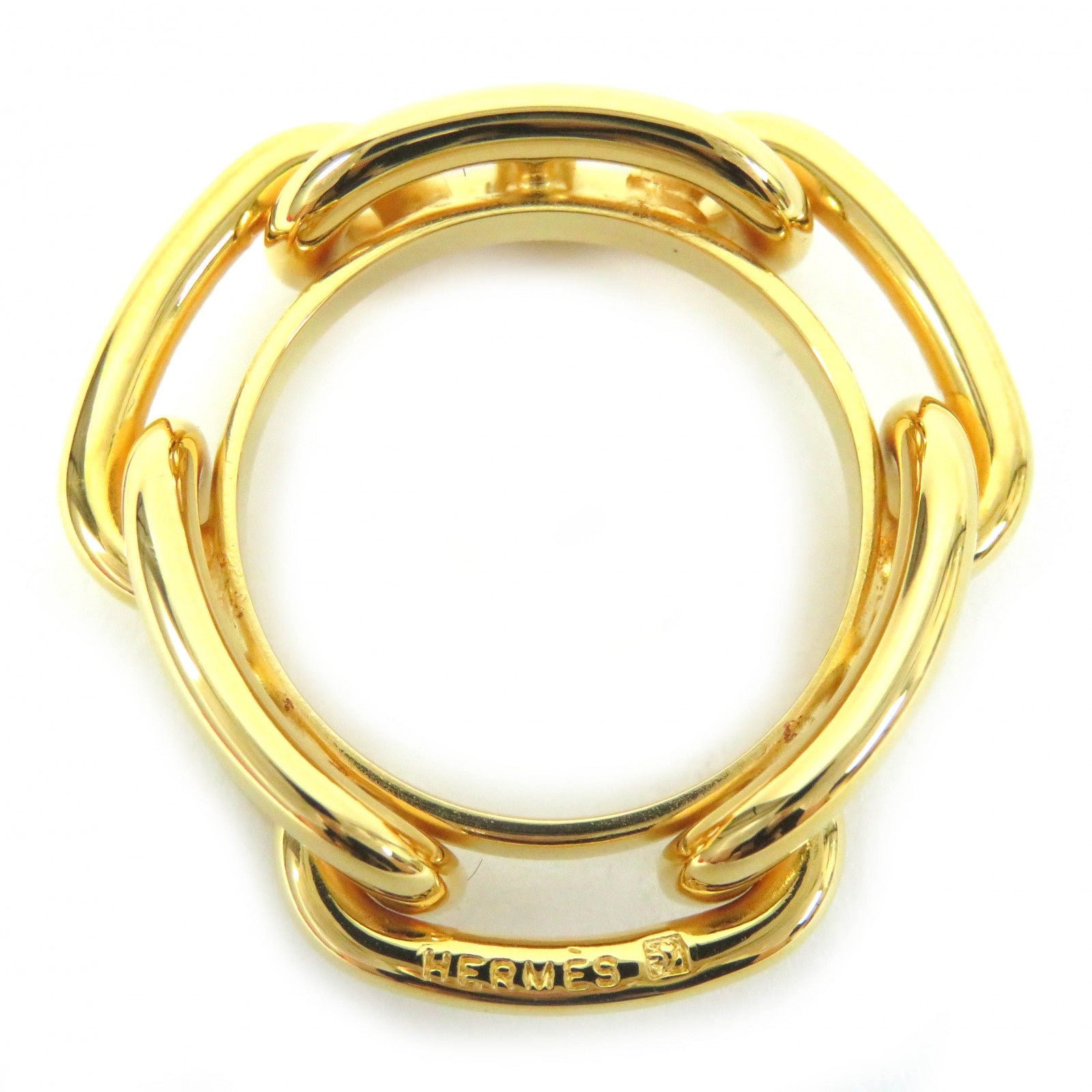 HERMES Scarf ring Main�FGold Plated gold Lucade Chene Dunkle Gold Plated Women Used Authentic