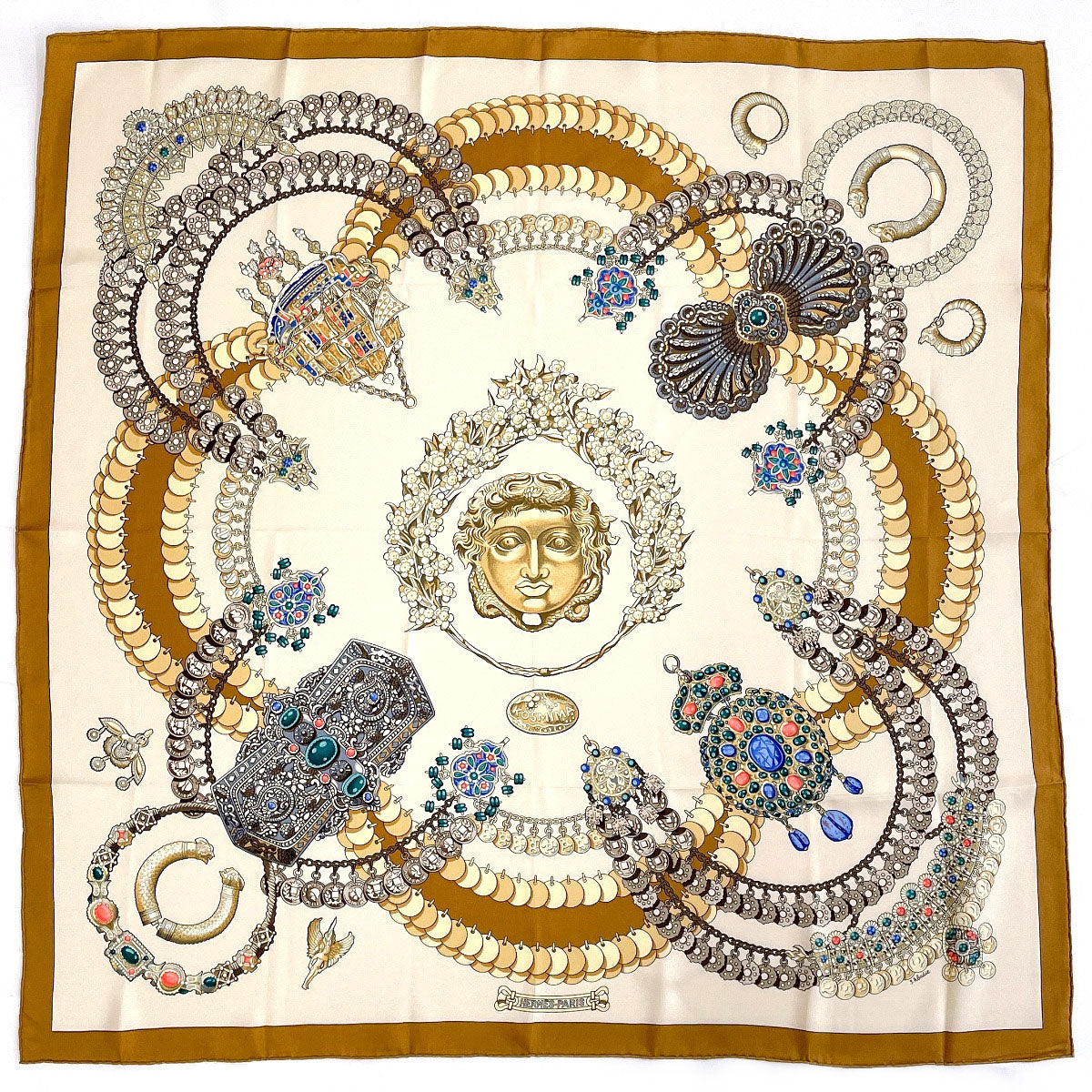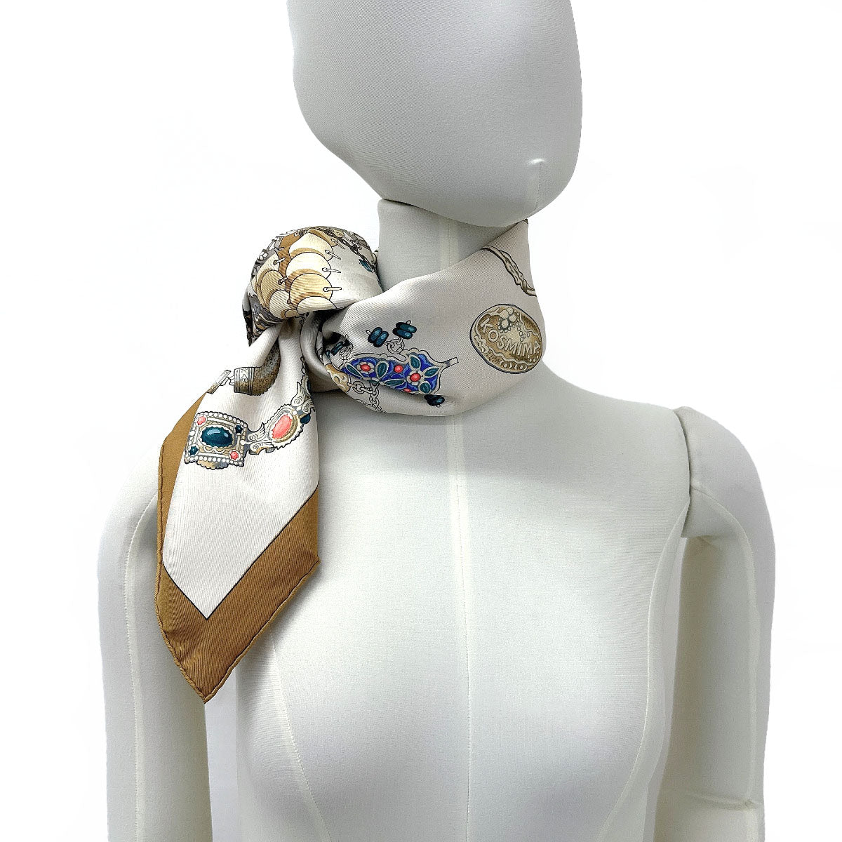 HERMES scarf Silk, 100% silk Brown KOSMIMA Universe Carre 90 Women Used Authentic