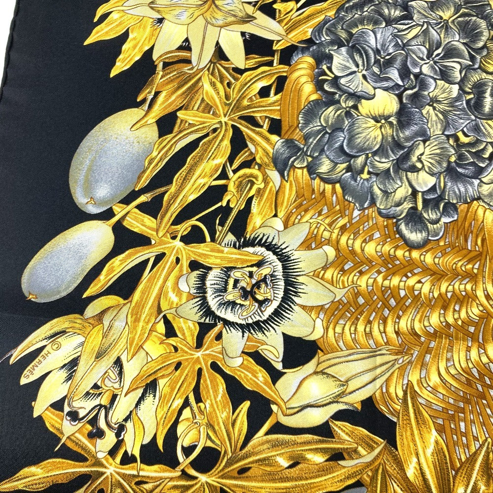 HERMES scarf silk black Carre90 PASSIFLORES Passion Flower Women Used Authentic