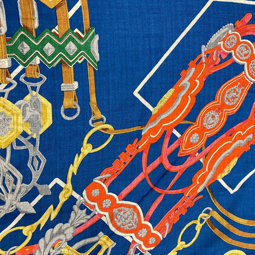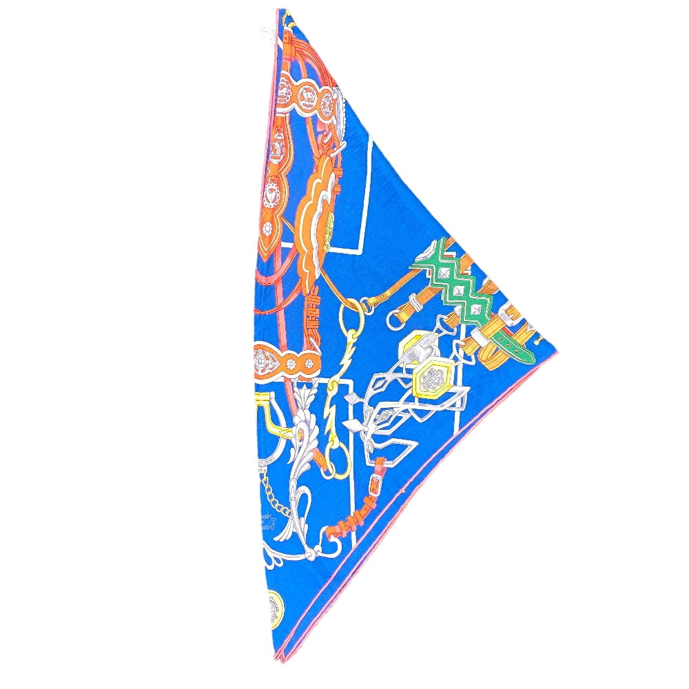 HERMES scarf silk blue Brides et Destin Triangle Jean Women Used Authentic
