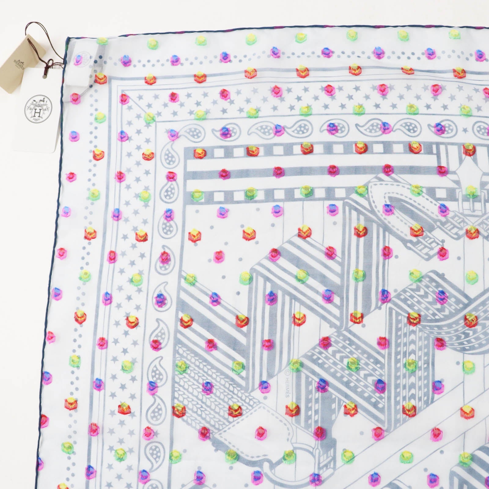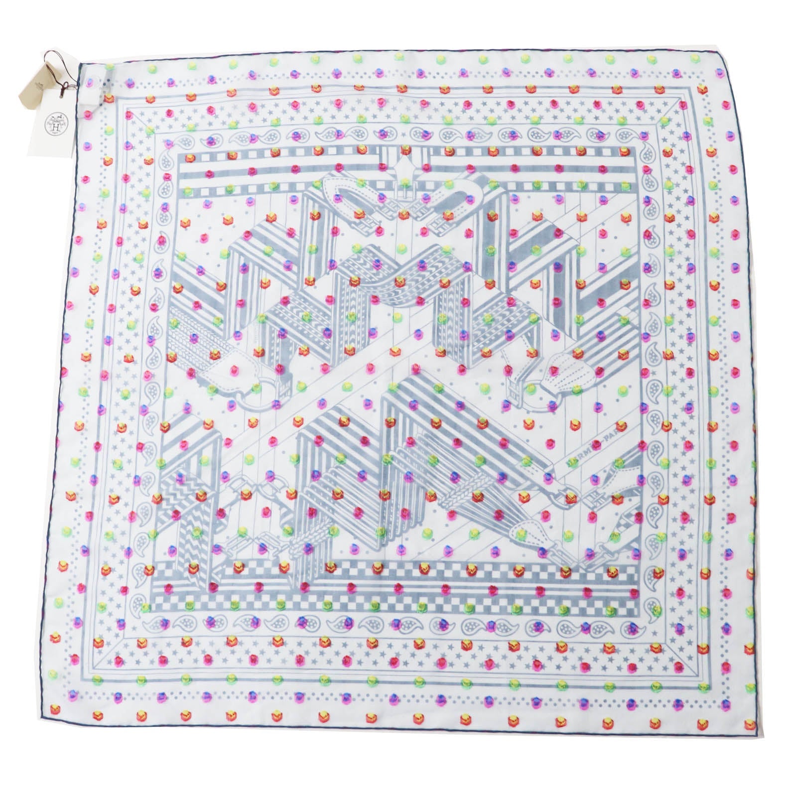HERMES scarf Main: 78% silk, Main: 22% acetate blue Carre 60 SANGLESENZIGZAG Zigzag sangle BANDANA Women Used Authentic