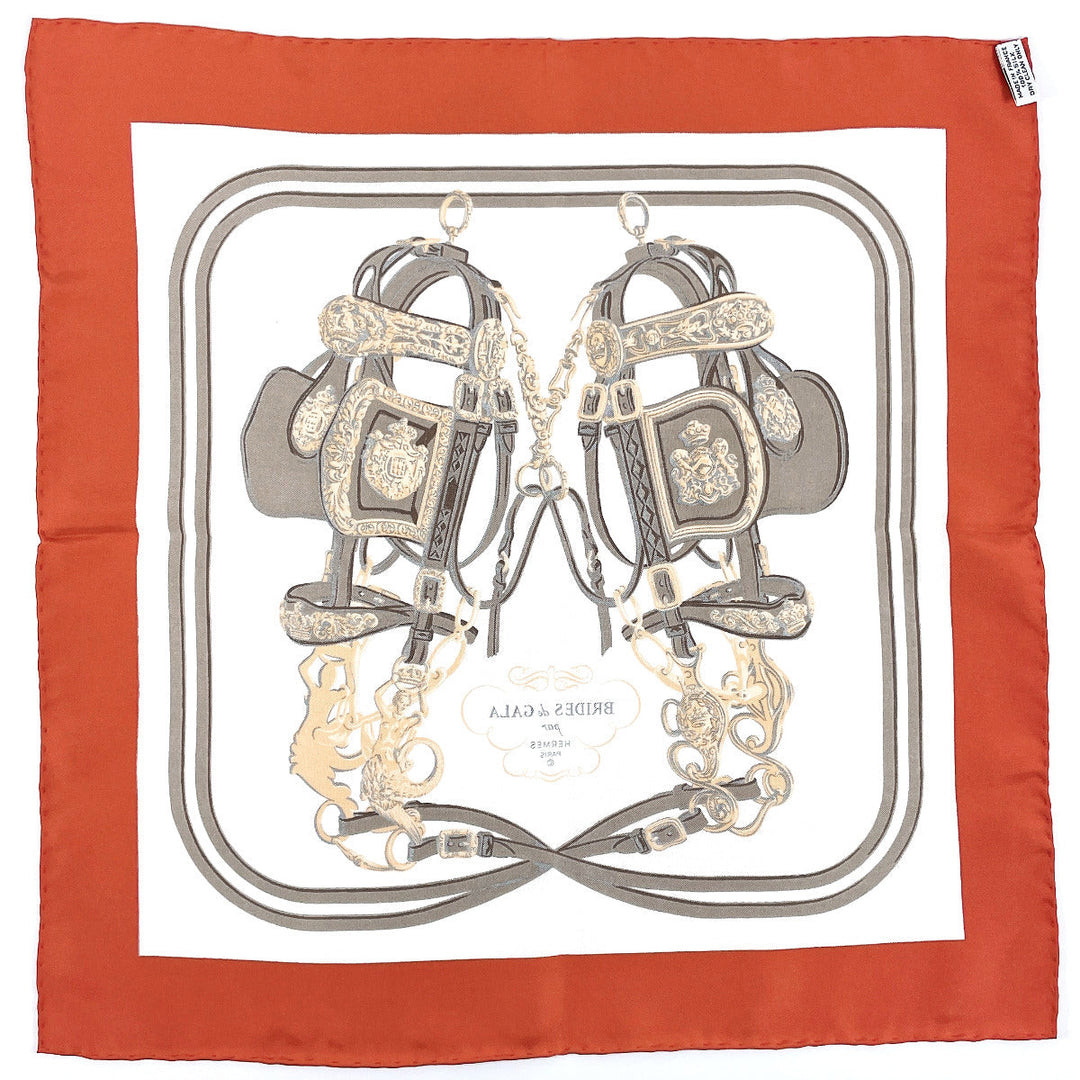 HERMES scarf silk Brown BRIDES de GARA Carre 45