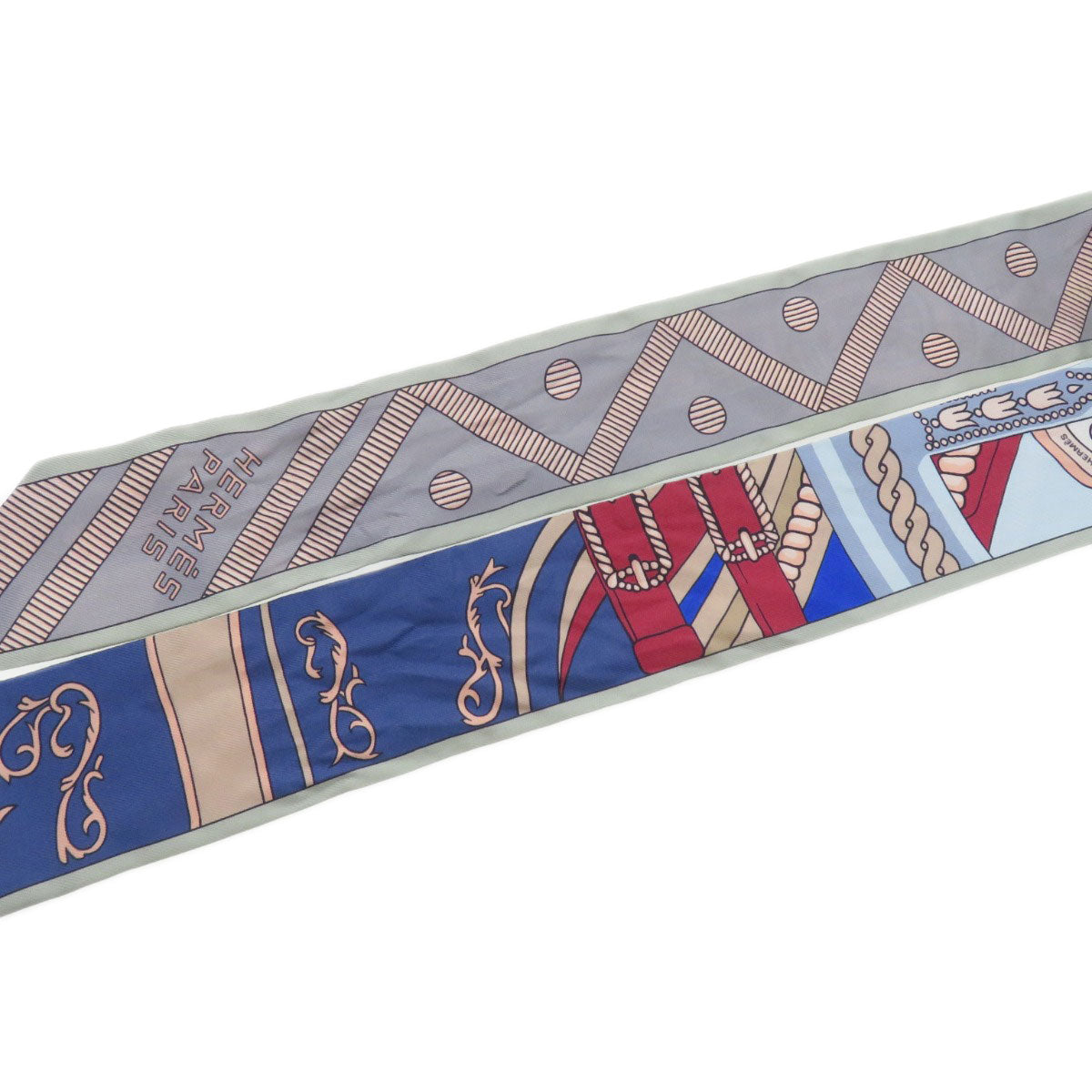HERMES scarf silk gray Twilly Women Used Authentic