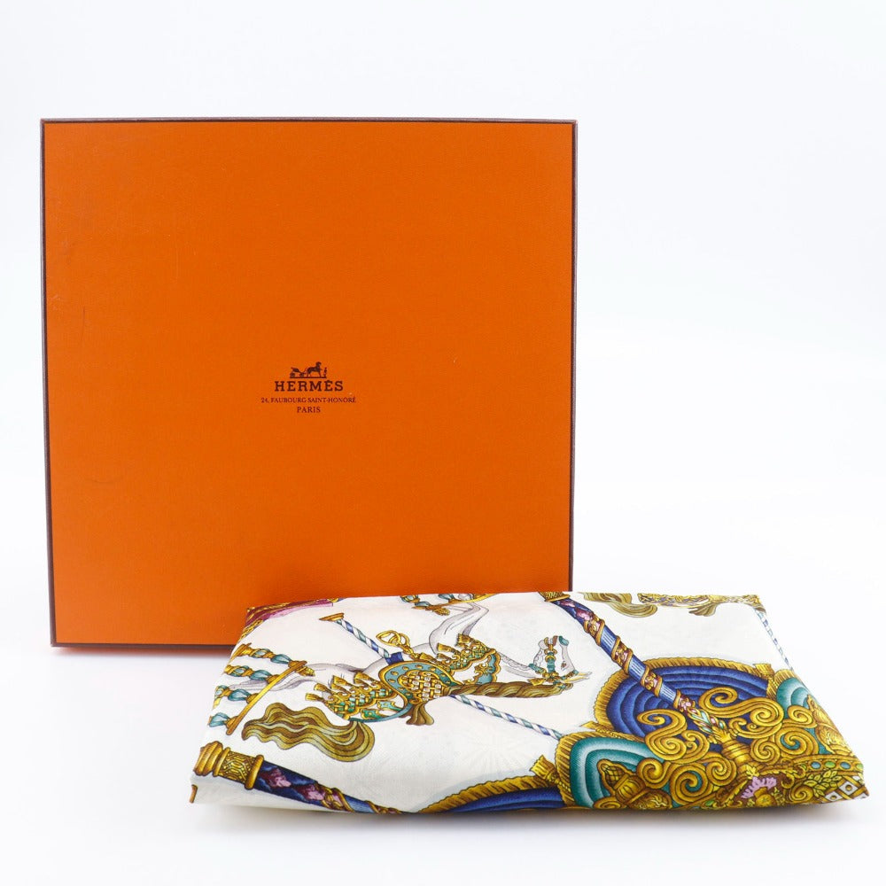 HERMES scarf silk Green Merry-go-round LUNA PARK amusement park Carre90 Women Used Authentic