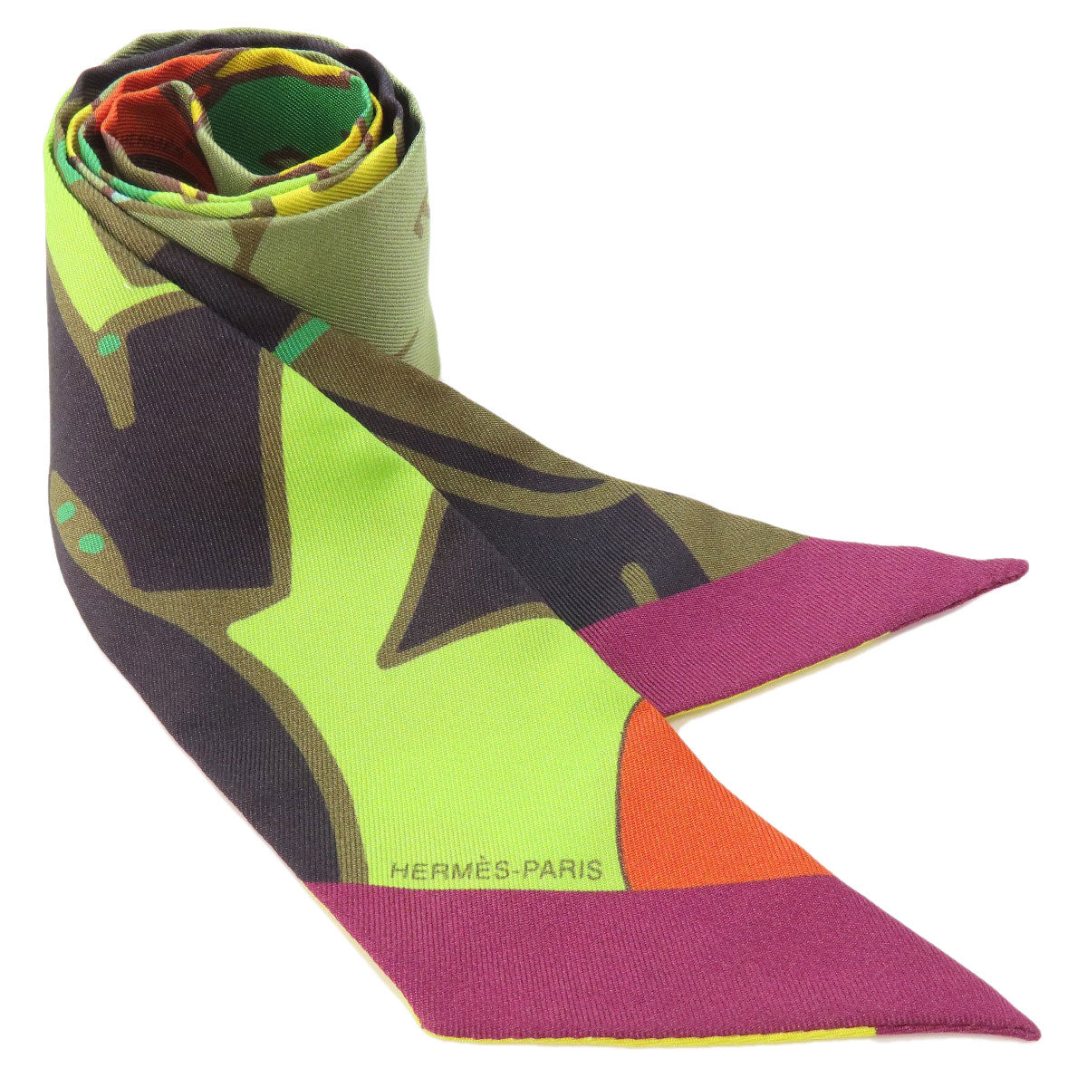 HERMES scarf silk green Twilly Women Used Authentic