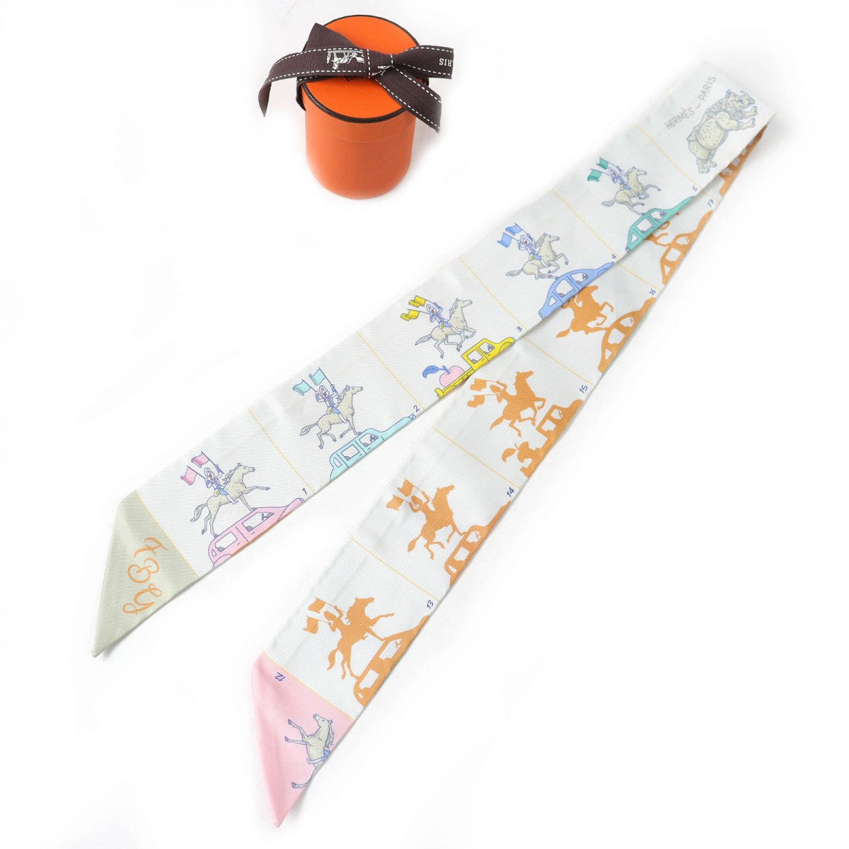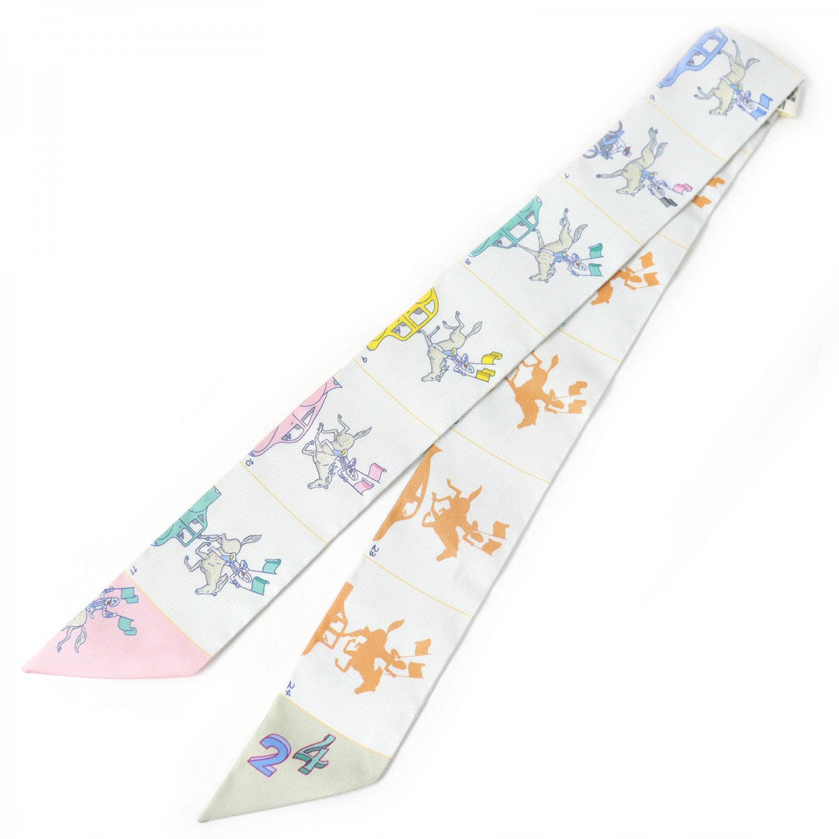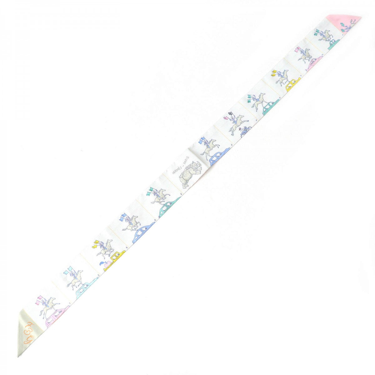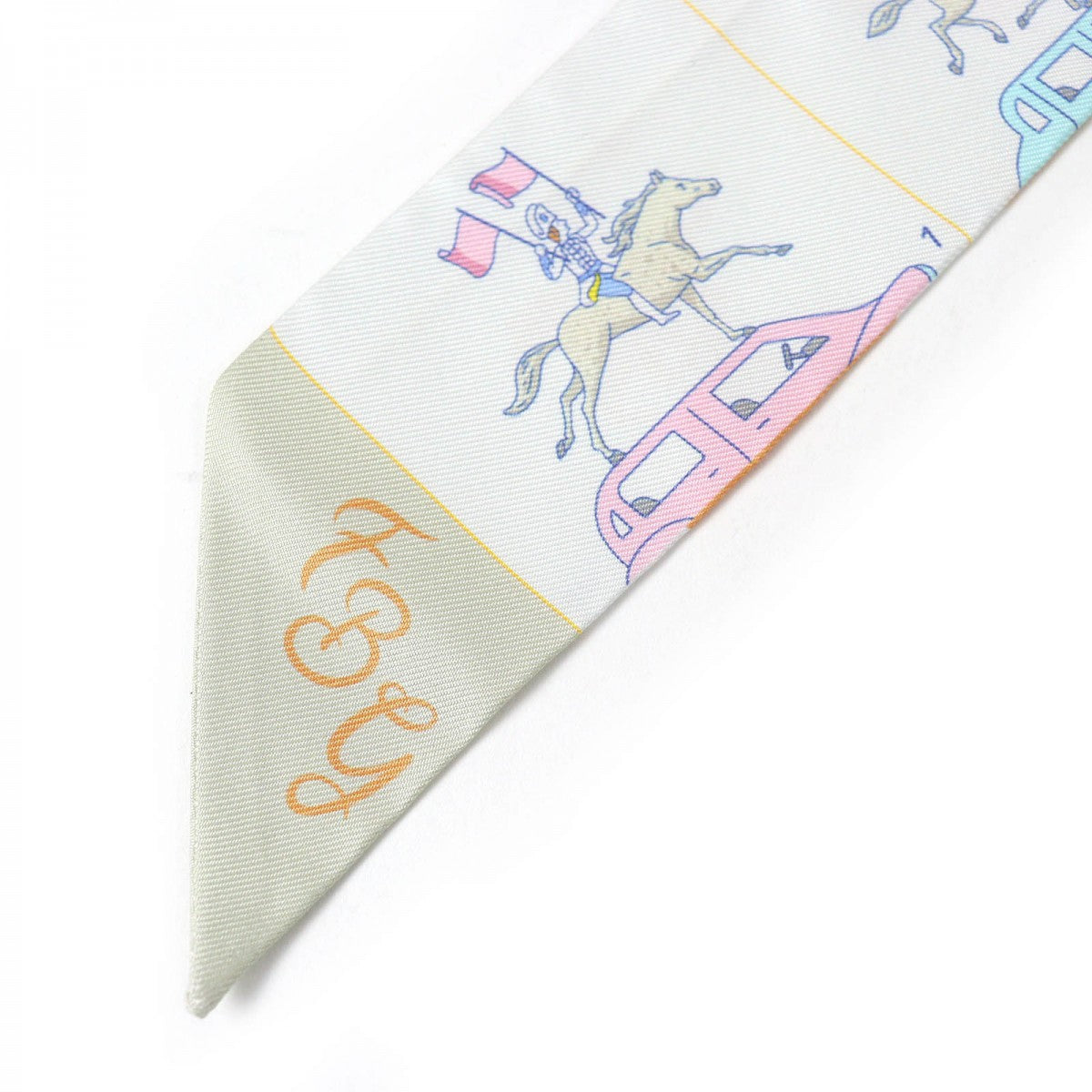 HERMES scarf silk Gris Perle /Green/Yellow Twilly PARADE